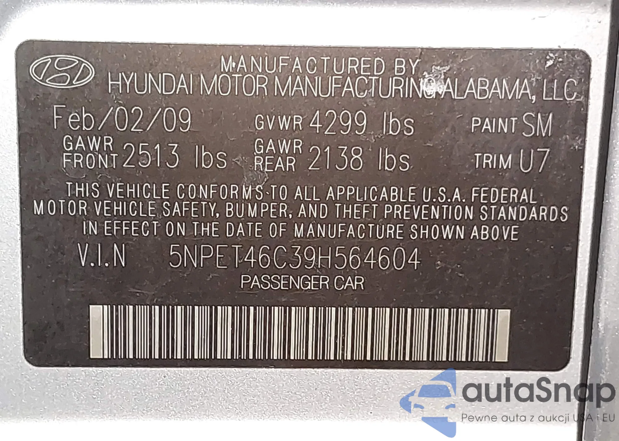 Samochód Hyundai Sonata 2009 (VIN 5NPET46C39H564604) nie był wcześniej licytowany. Dokumenty są czyste, przebieg odpowiada lub jest niższy niż średnia rynku. Sprzedaje go firma ubezpieczeniowa – polecamy zakup. Dostawa do portu zajmie ok. 6–8 tygodni.