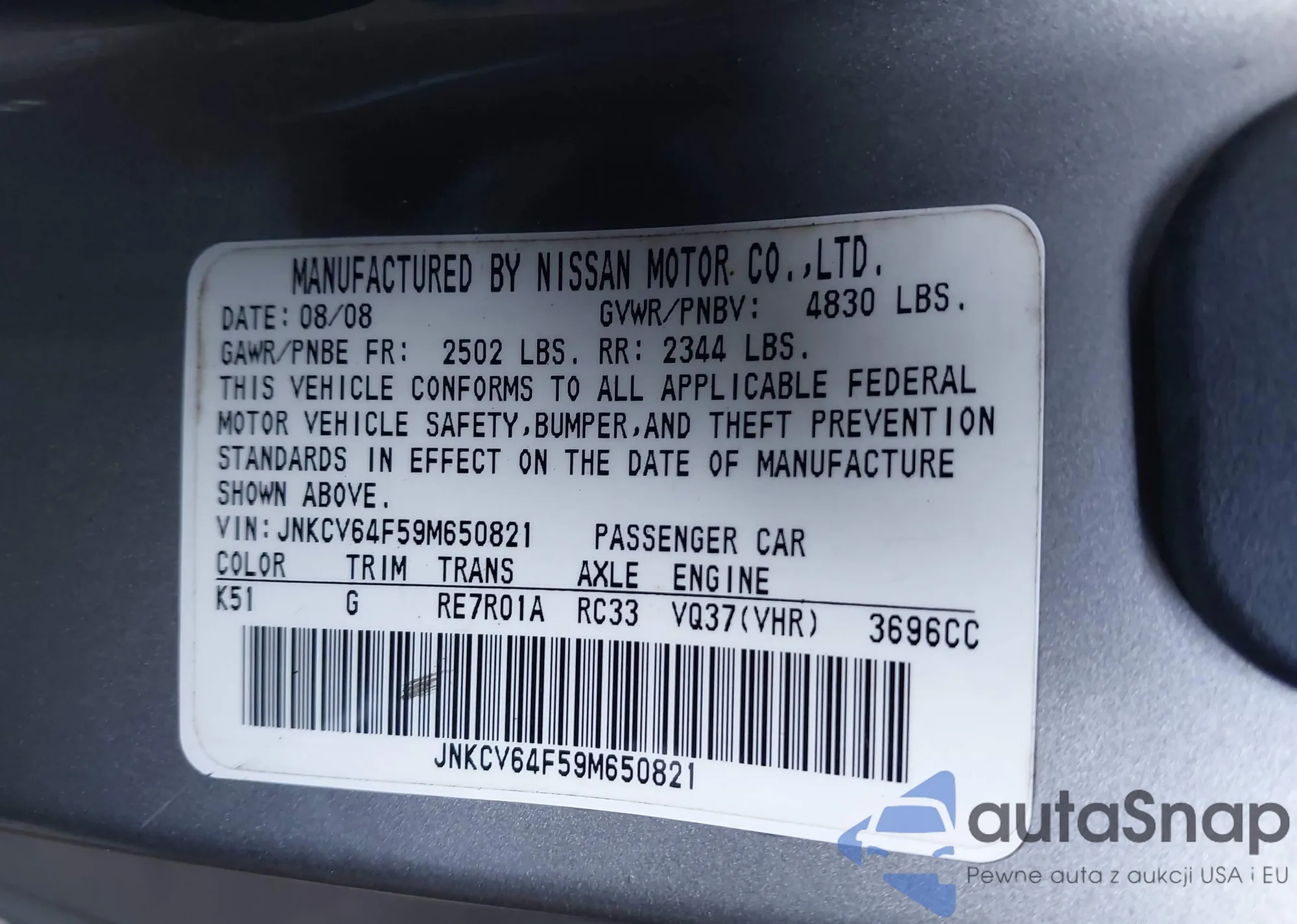 • Marka: 2009 Infiniti G37X