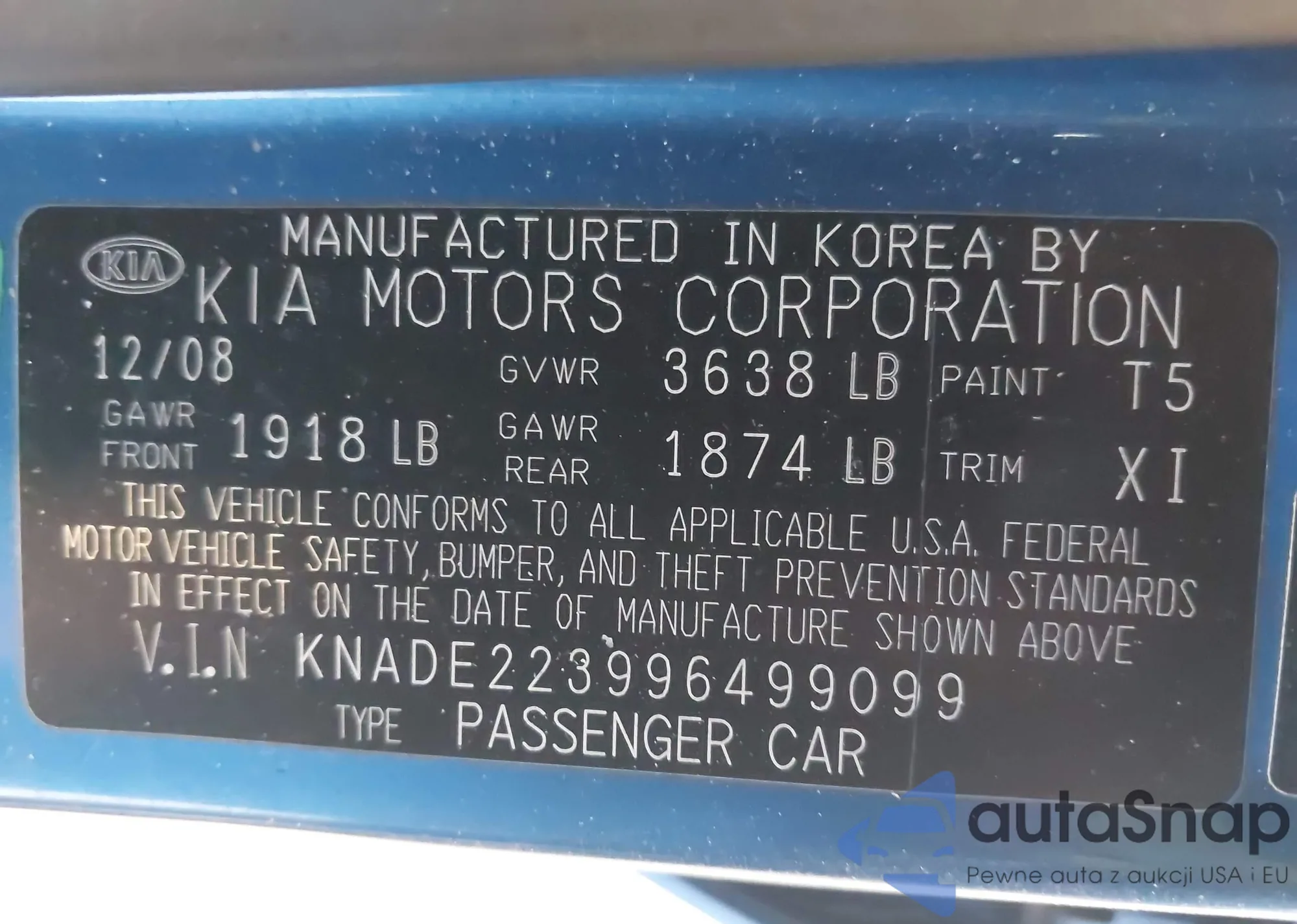 • VIN: KNADE223996499099