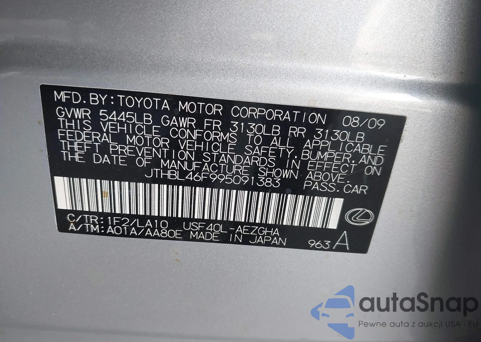Samochód Lexus LS 2009 (VIN JTHBL46F995091383) nie był wcześniej licytowany. Dokumenty są czyste, przebieg odpowiada lub jest niższy niż średnia rynku. Sprzedaje go firma ubezpieczeniowa – polecamy zakup. Dostawa do portu zajmie ok. 6–8 tygodni.