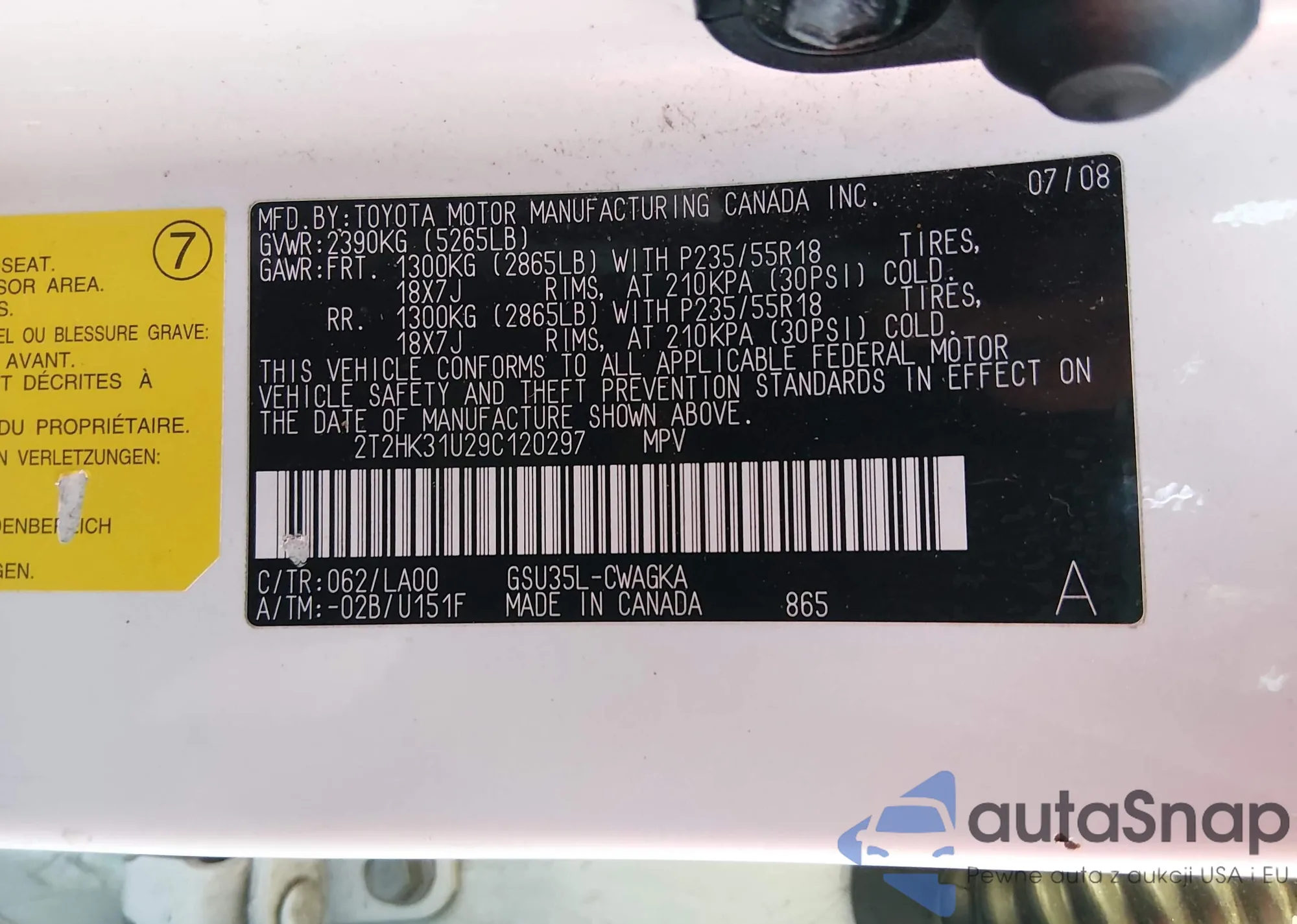 VIN: 2T2HK31U29C120297