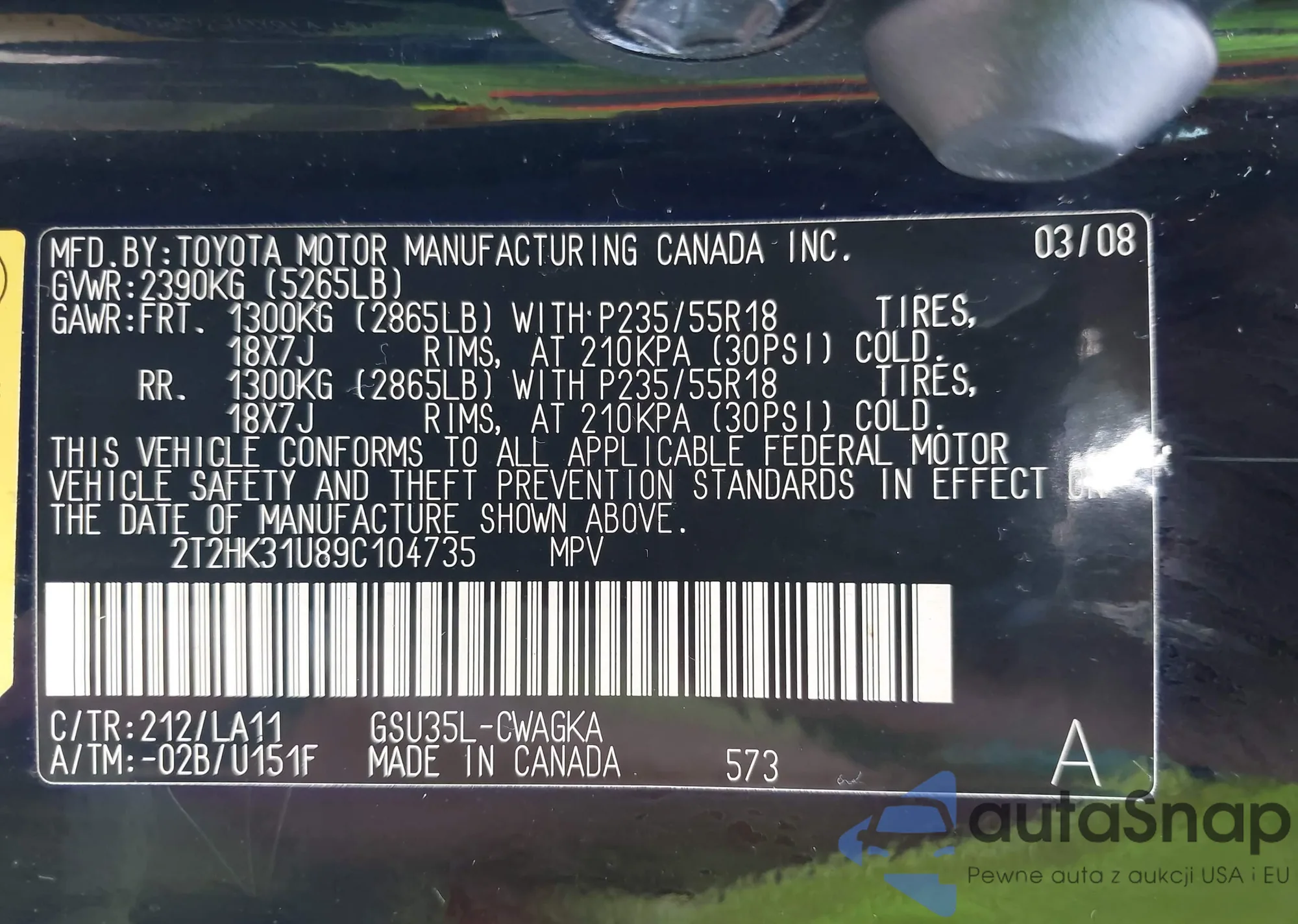 VIN: 2T2HK31U89C104735