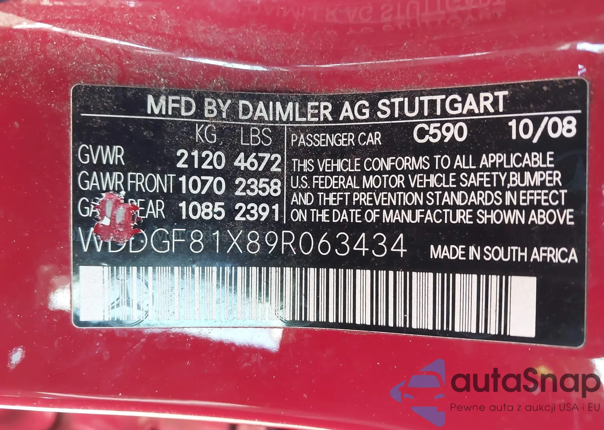 Samochód Mercedes-Benz C-klasse 2009 (VIN WDDGF81X89R063434) nie był wcześniej licytowany. Dokumenty są czyste, przebieg odpowiada lub jest niższy niż średnia rynku. Sprzedaje go firma ubezpieczeniowa – polecamy zakup. Dostawa do portu zajmie ok. 6–8 tygodni.