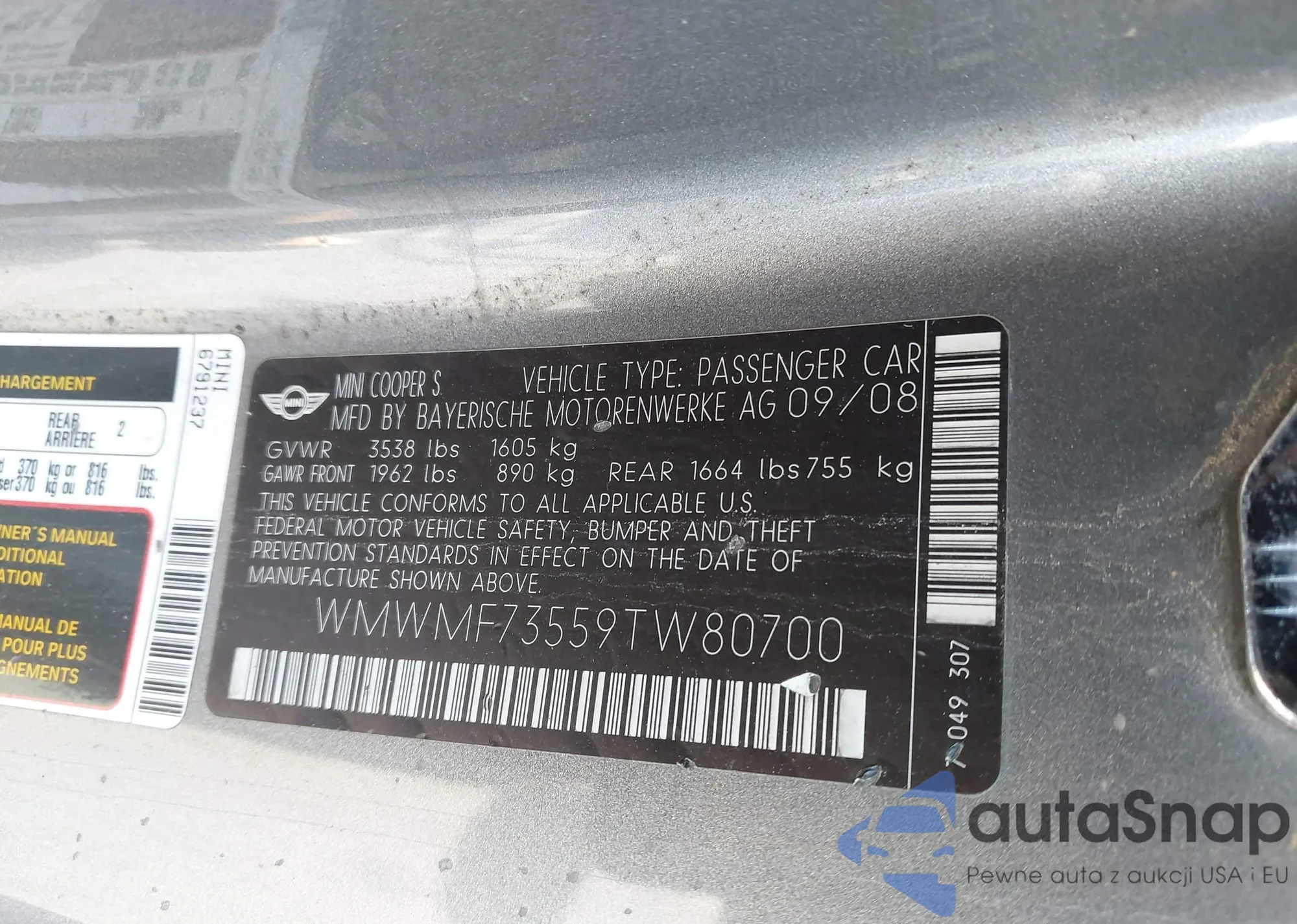 • VIN: WMWMF73559TW80700