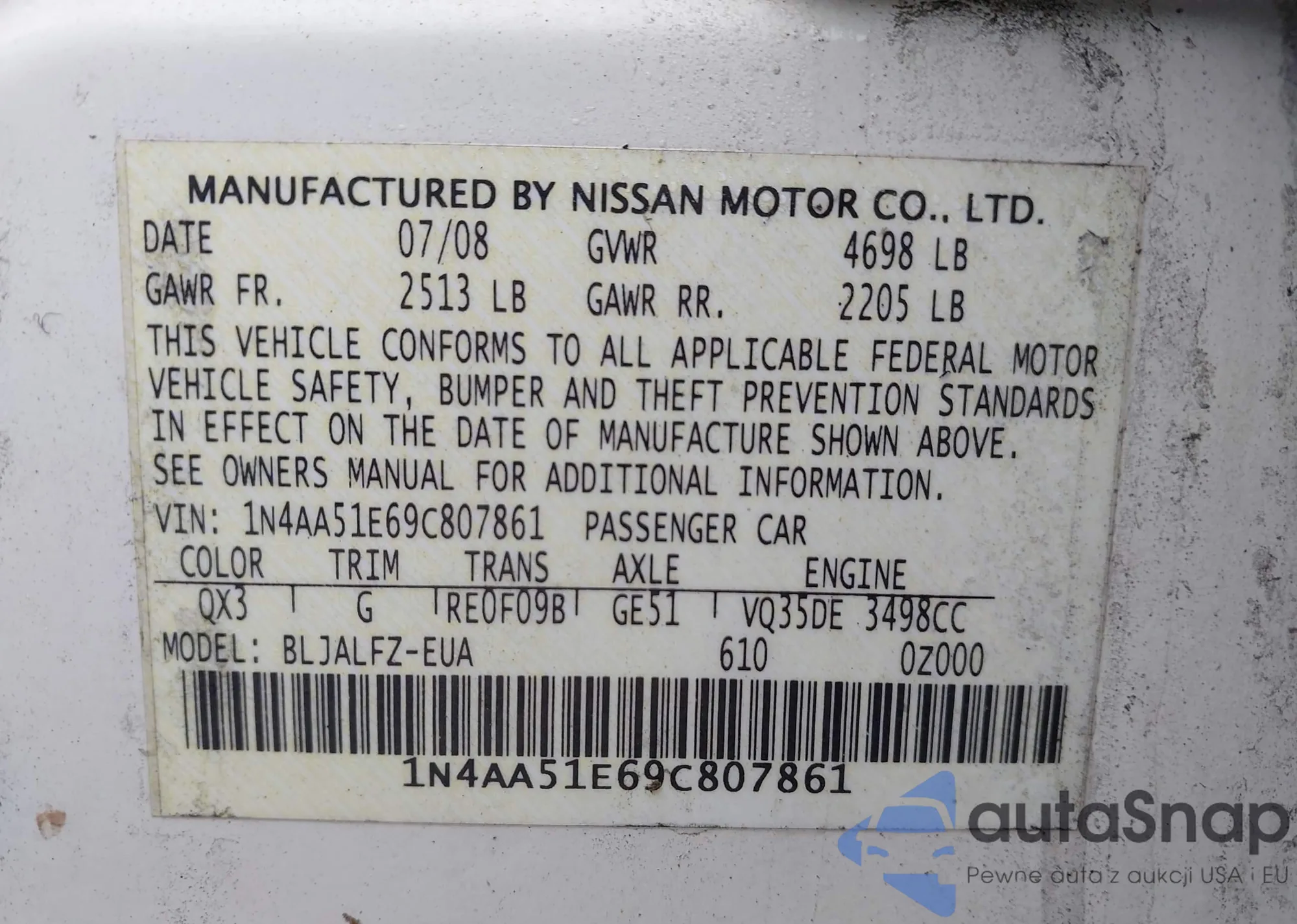 VIN: 1N4AA51E69C807861