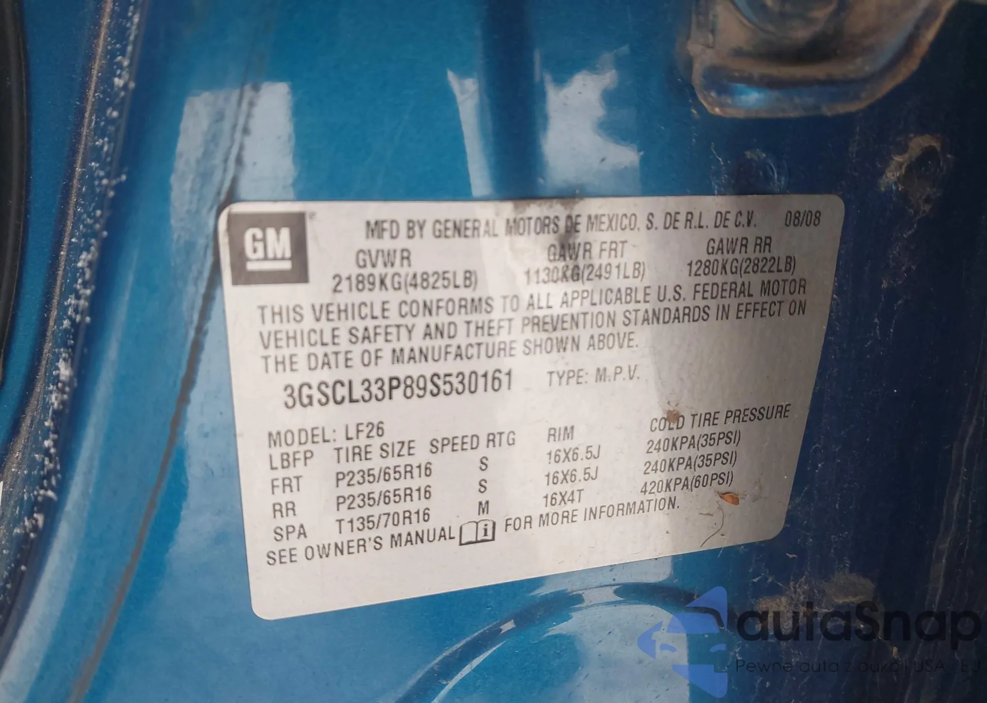 • VIN: 3GSCL33P89S530161