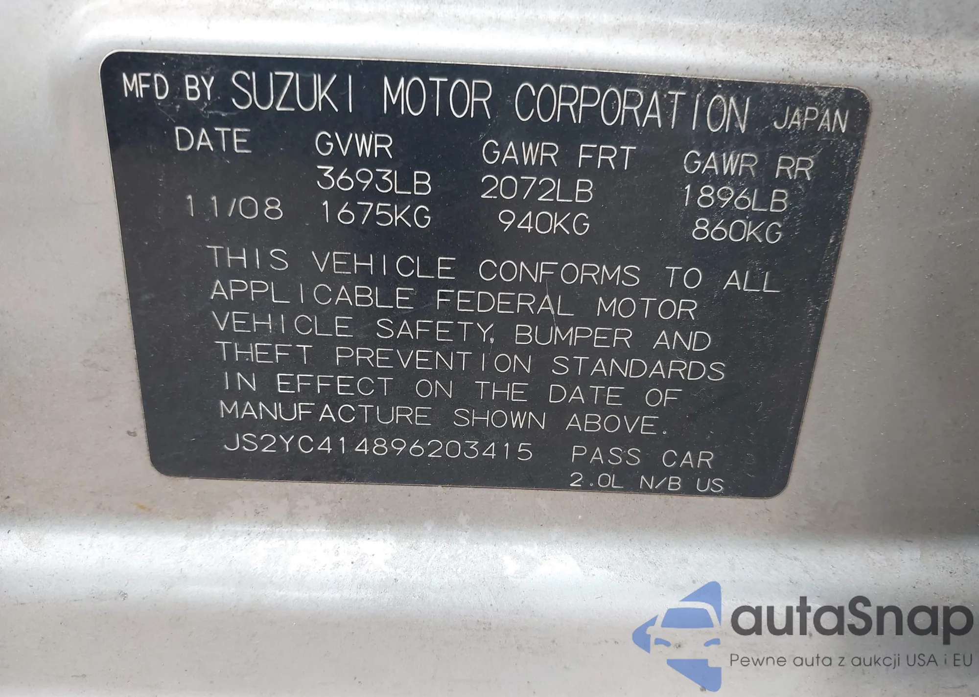 • VIN: JS2YC414896203415