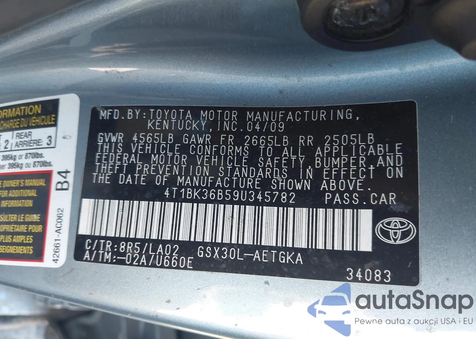 Samochód Toyota Avalon 2009 (VIN 4T1BK36B59U345782) był już licytowany 1 razy i/lub sprzedaje go niezweryfikowany sprzedawca. Zalecamy raport Carfax i potwierdzenie możliwości rejestracji pojazdu przed zakupem.