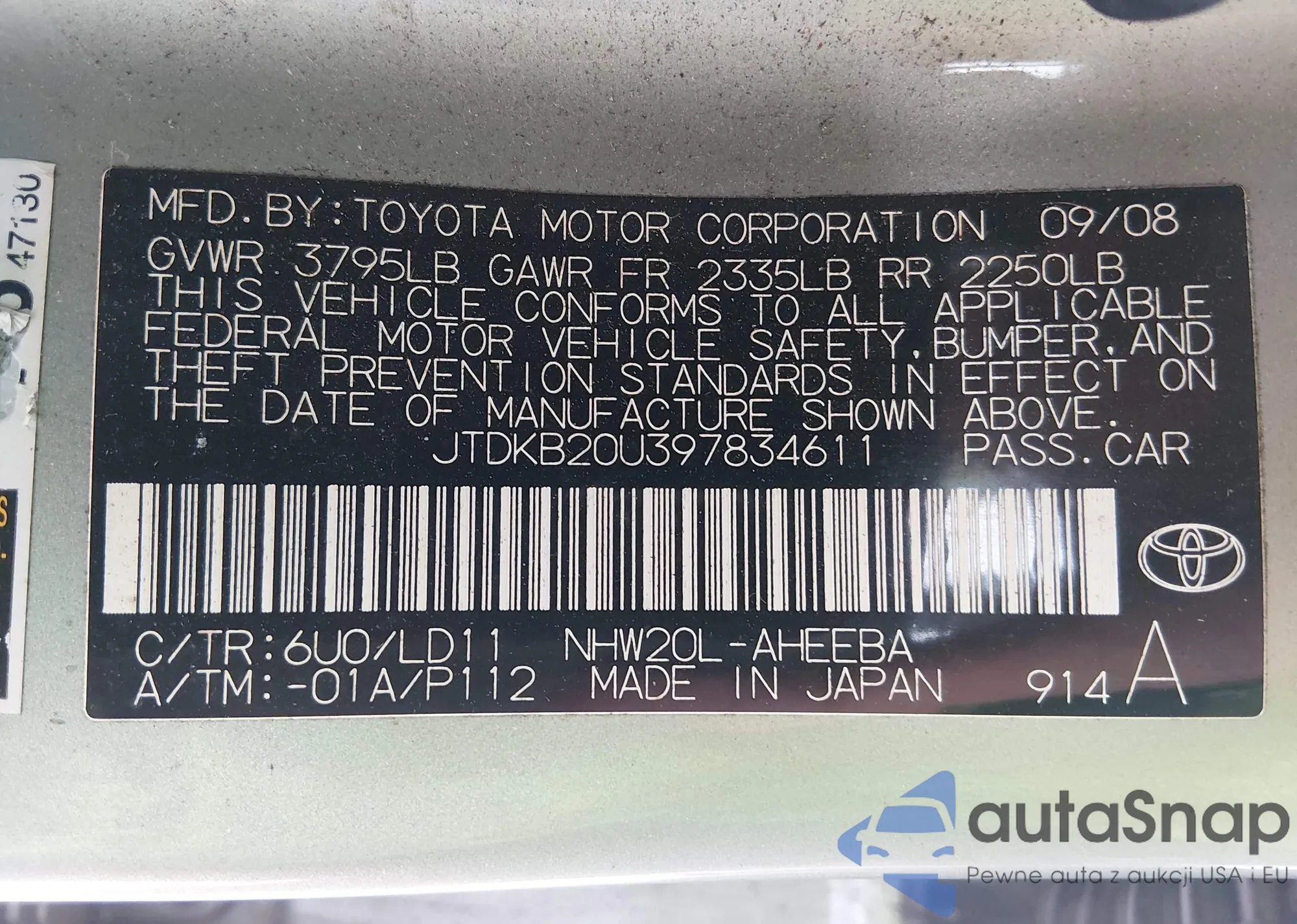 Samochód Toyota Prius 2009 (VIN JTDKB20U397834611) nie był wcześniej licytowany. Dokumenty są czyste, przebieg odpowiada lub jest niższy niż średnia rynku. Sprzedaje go firma ubezpieczeniowa – polecamy zakup. Dostawa do portu zajmie ok. 6–8 tygodni.