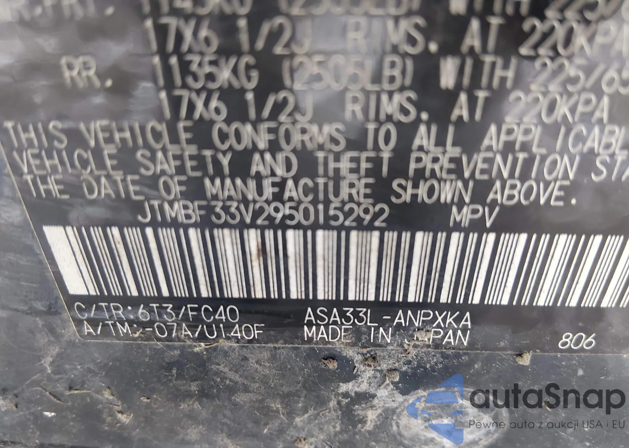 VIN: JTMBF33V295015292