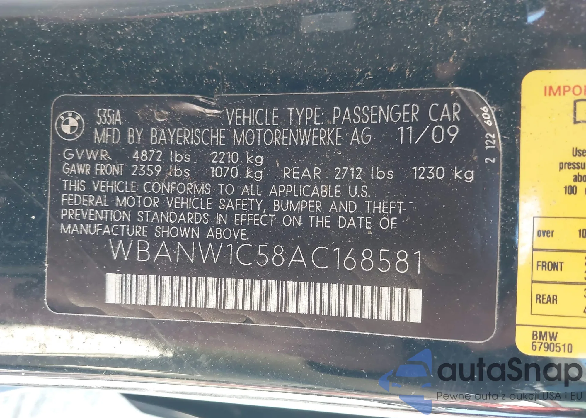 Samochód BMW 5er 2010 (VIN WBANW1C58AC168581) nie był wcześniej licytowany. Dokumenty są czyste, przebieg odpowiada lub jest niższy niż średnia rynku. Sprzedaje go firma ubezpieczeniowa – polecamy zakup. Dostawa do portu zajmie ok. 6–8 tygodni.