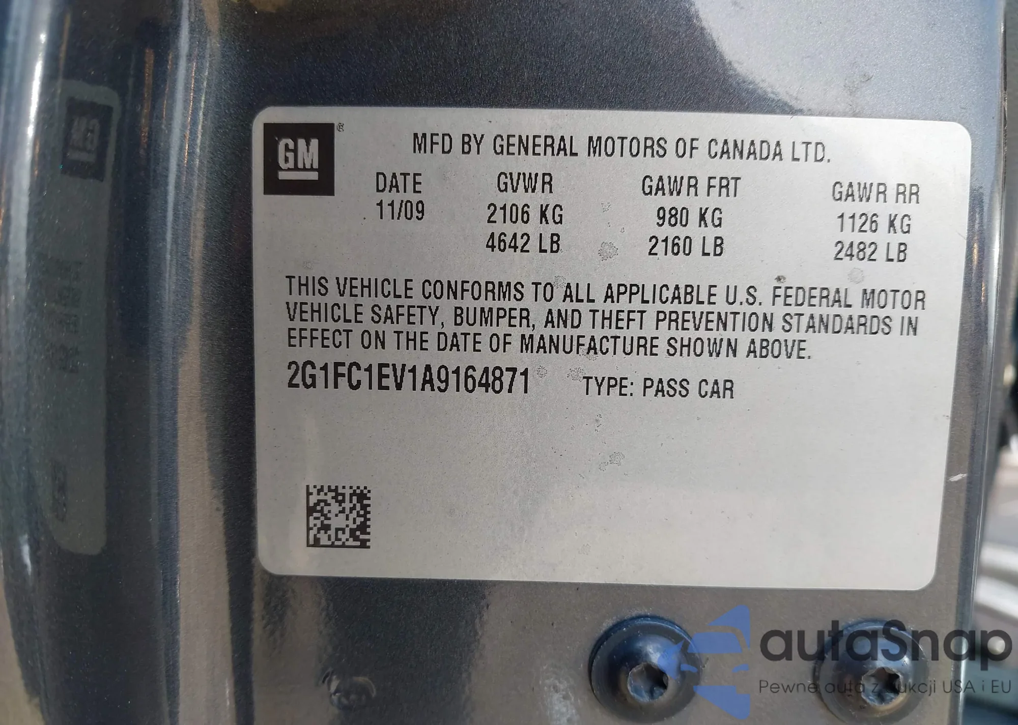 • VIN: 2G1FC1EV1A9164871