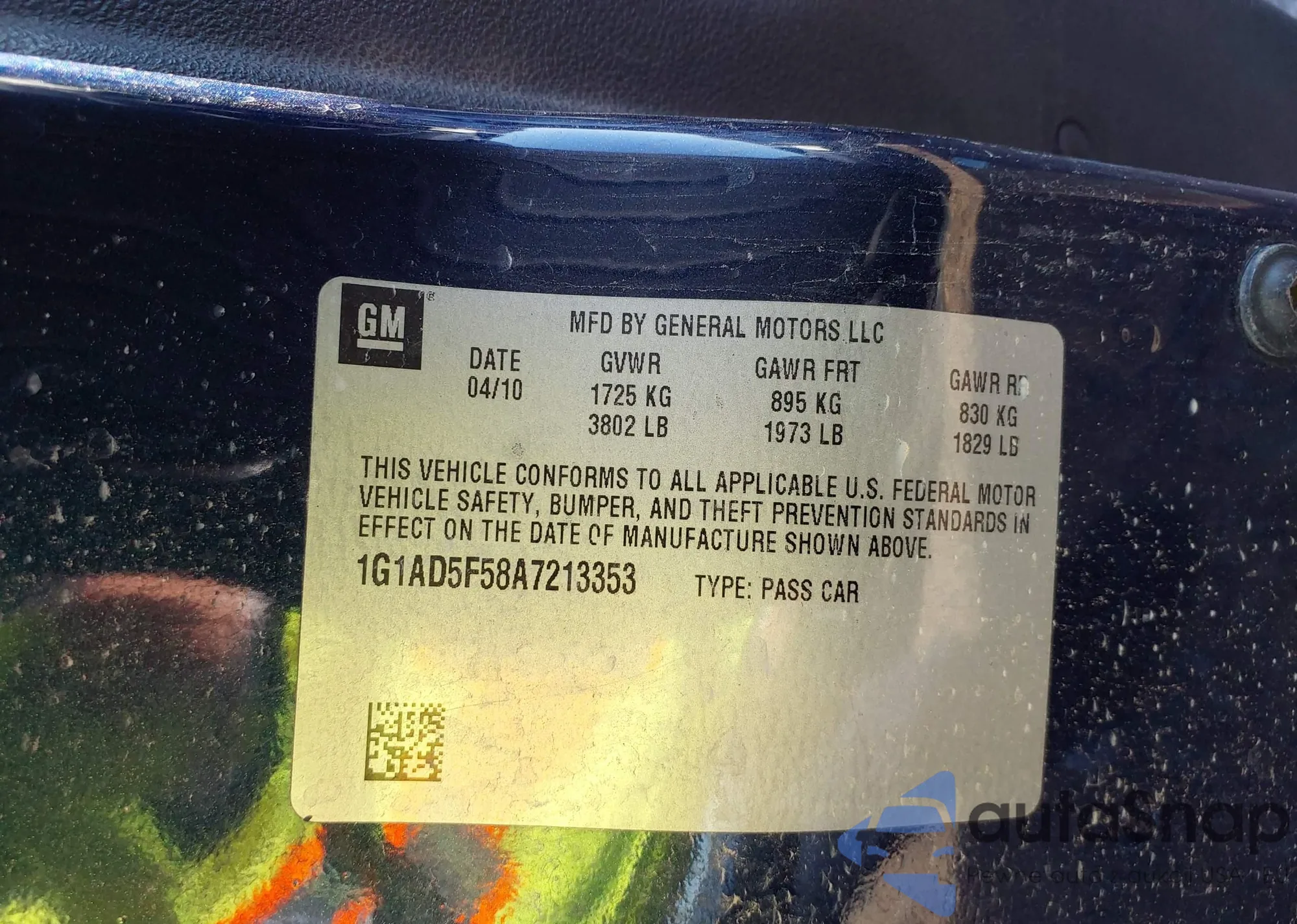 • VIN: 1G1AD5F58A7213353
