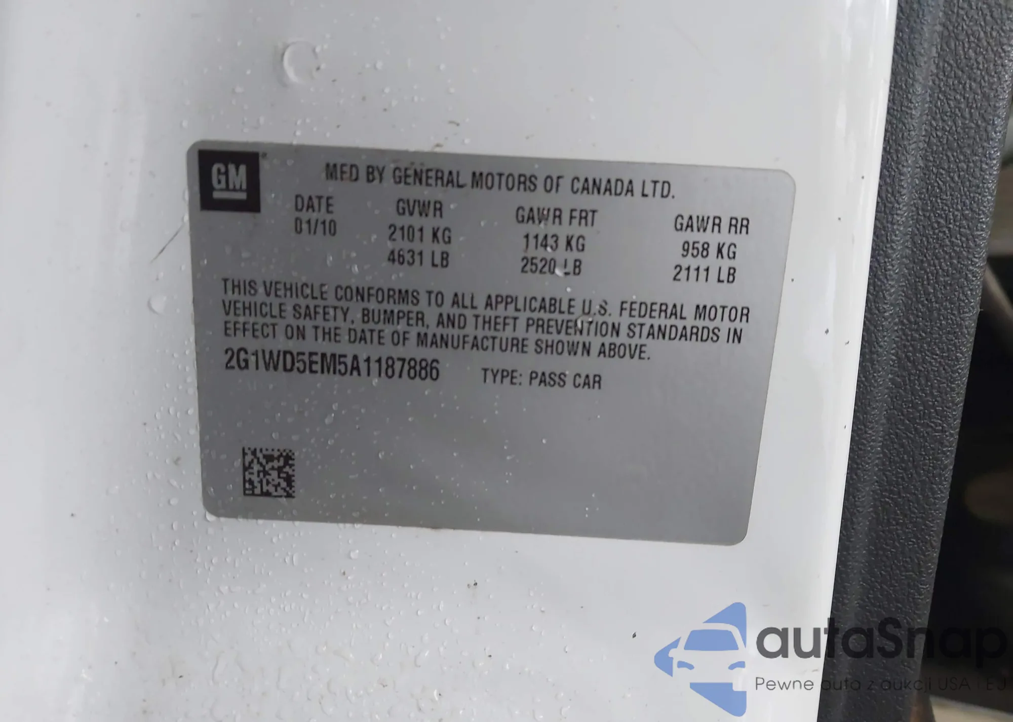 • VIN: 2G1WD5EM5A1187886