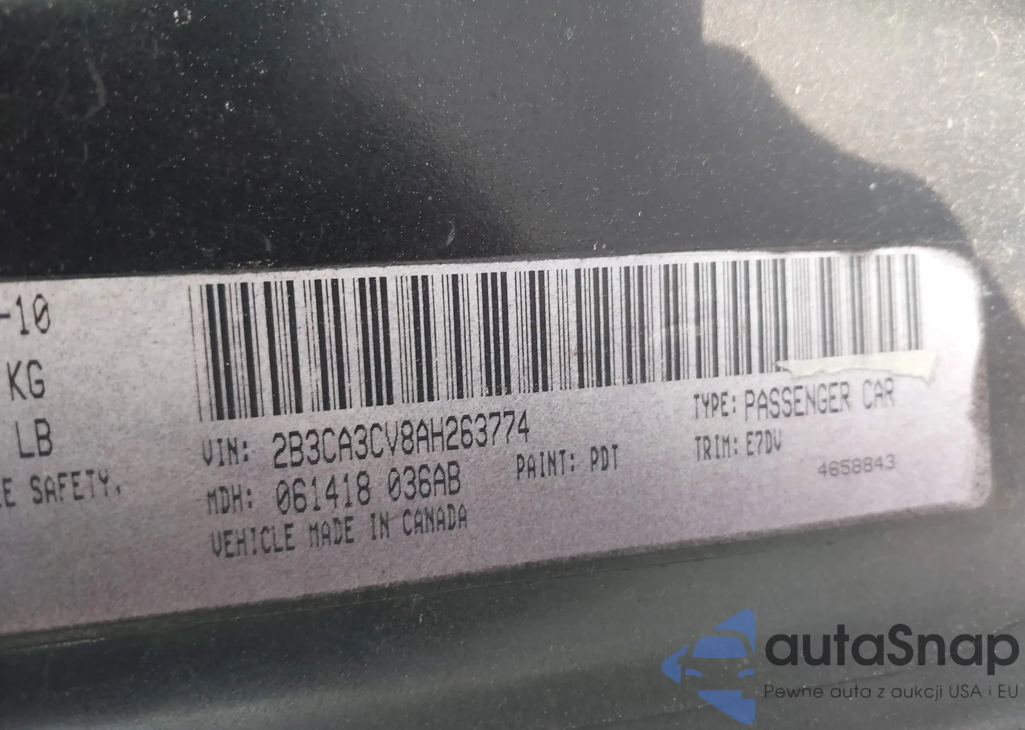 • VIN: 2B3CA3CV8AH263774