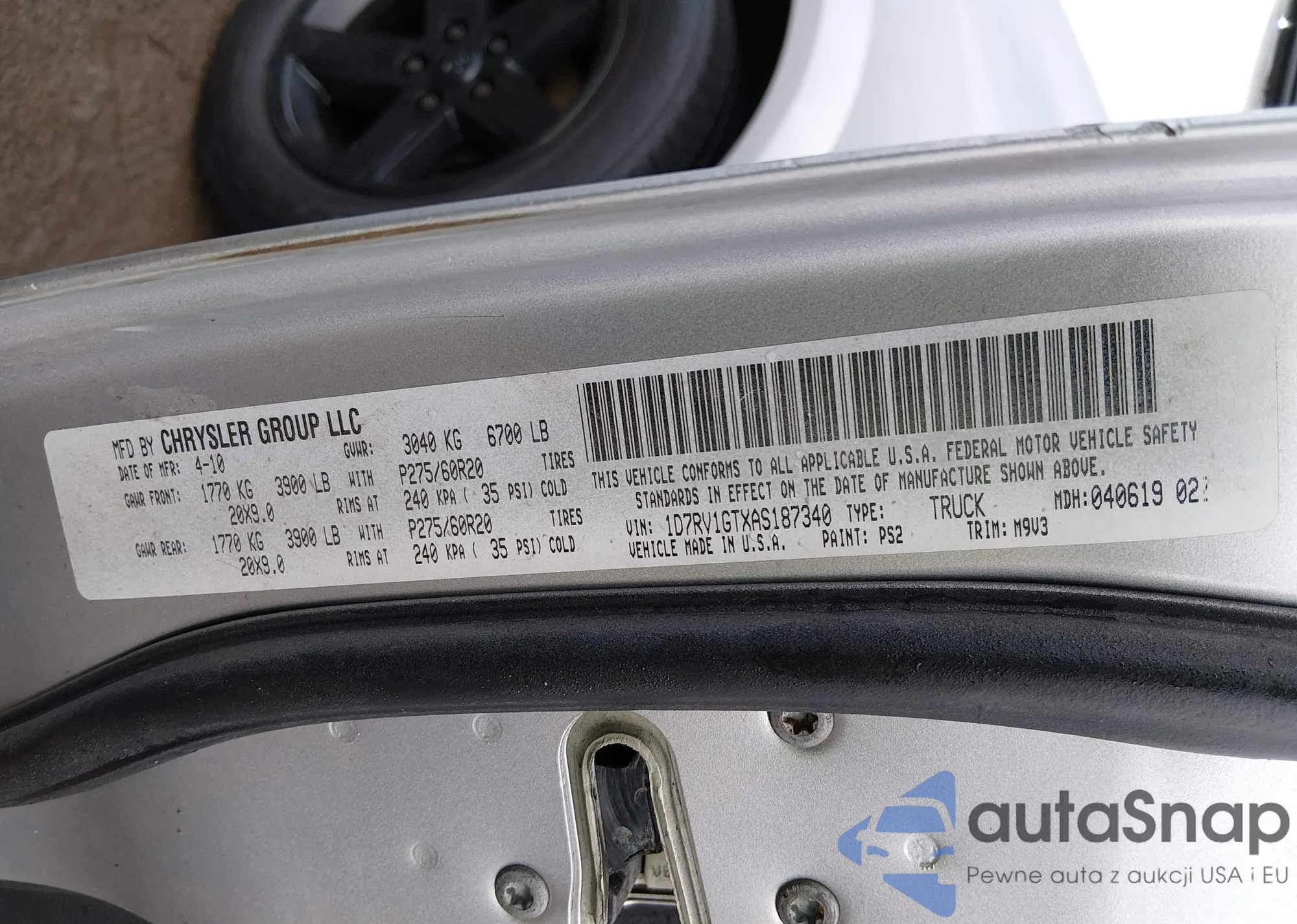 • VIN: 1D7RV1GTXAS187340