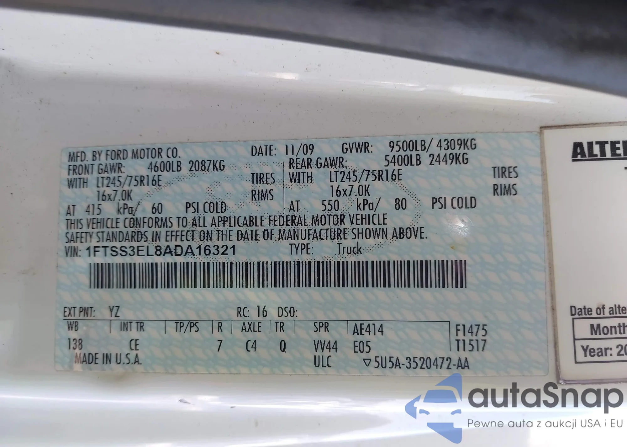 VIN: 1FTSS3EL8ADA16321