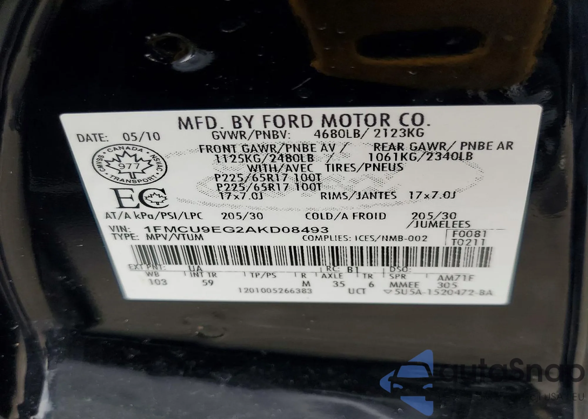 VIN: 1FMCU9EG2AKD08493