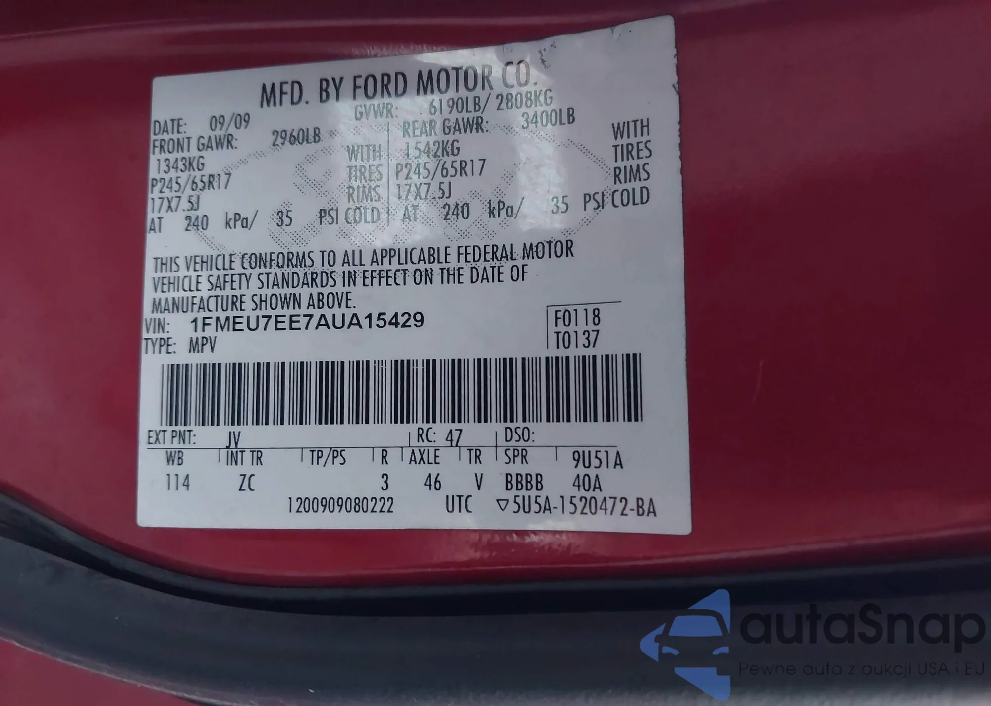 Samochód Ford Explorer 2010 (VIN 1FMEU7EE7AUA15429) nie był wcześniej licytowany. Dokumenty są czyste, przebieg odpowiada lub jest niższy niż średnia rynku. Sprzedaje go firma ubezpieczeniowa – polecamy zakup. Dostawa do portu zajmie ok. 6–8 tygodni.