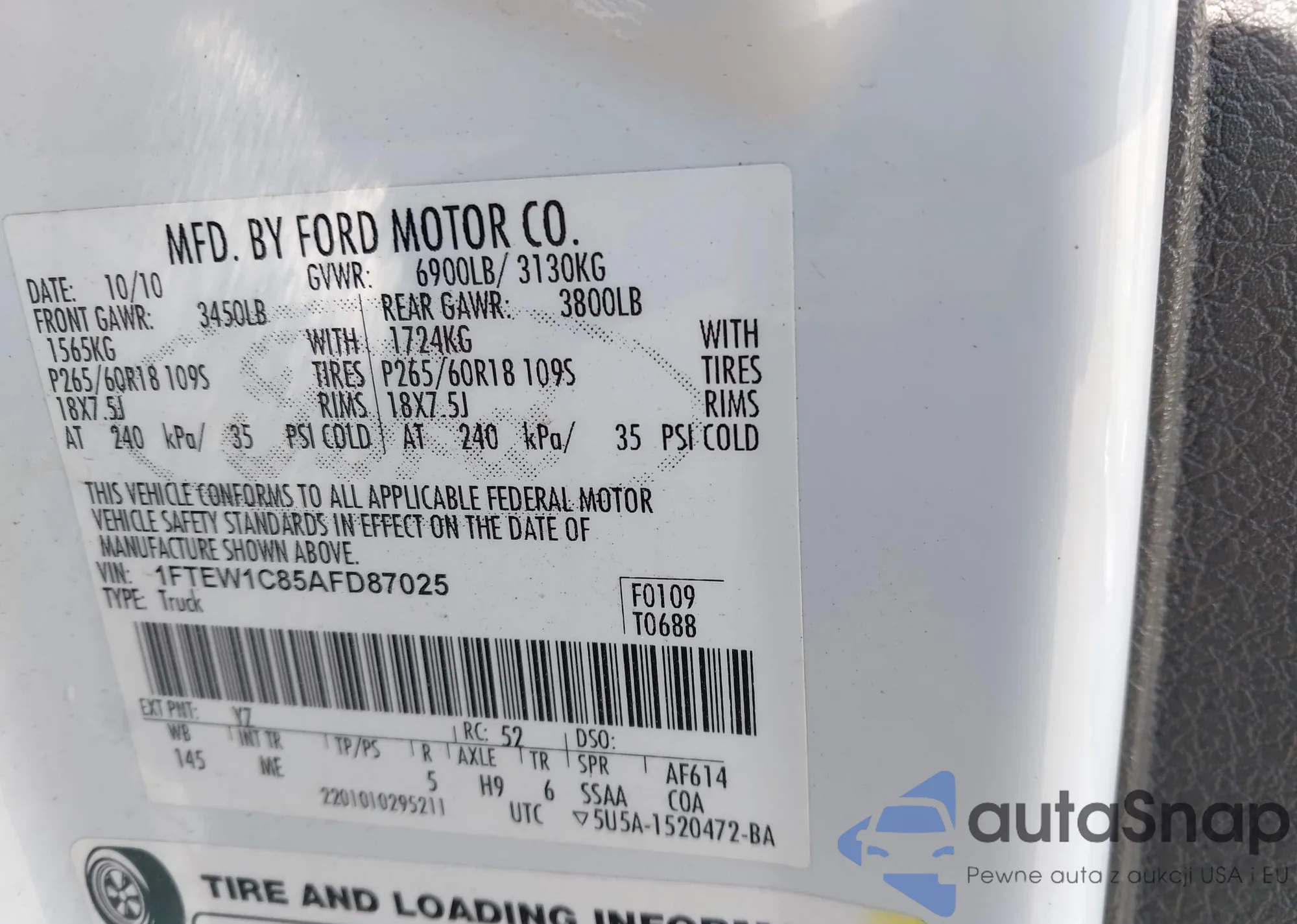 VIN: 1FTEW1C85AFD87025