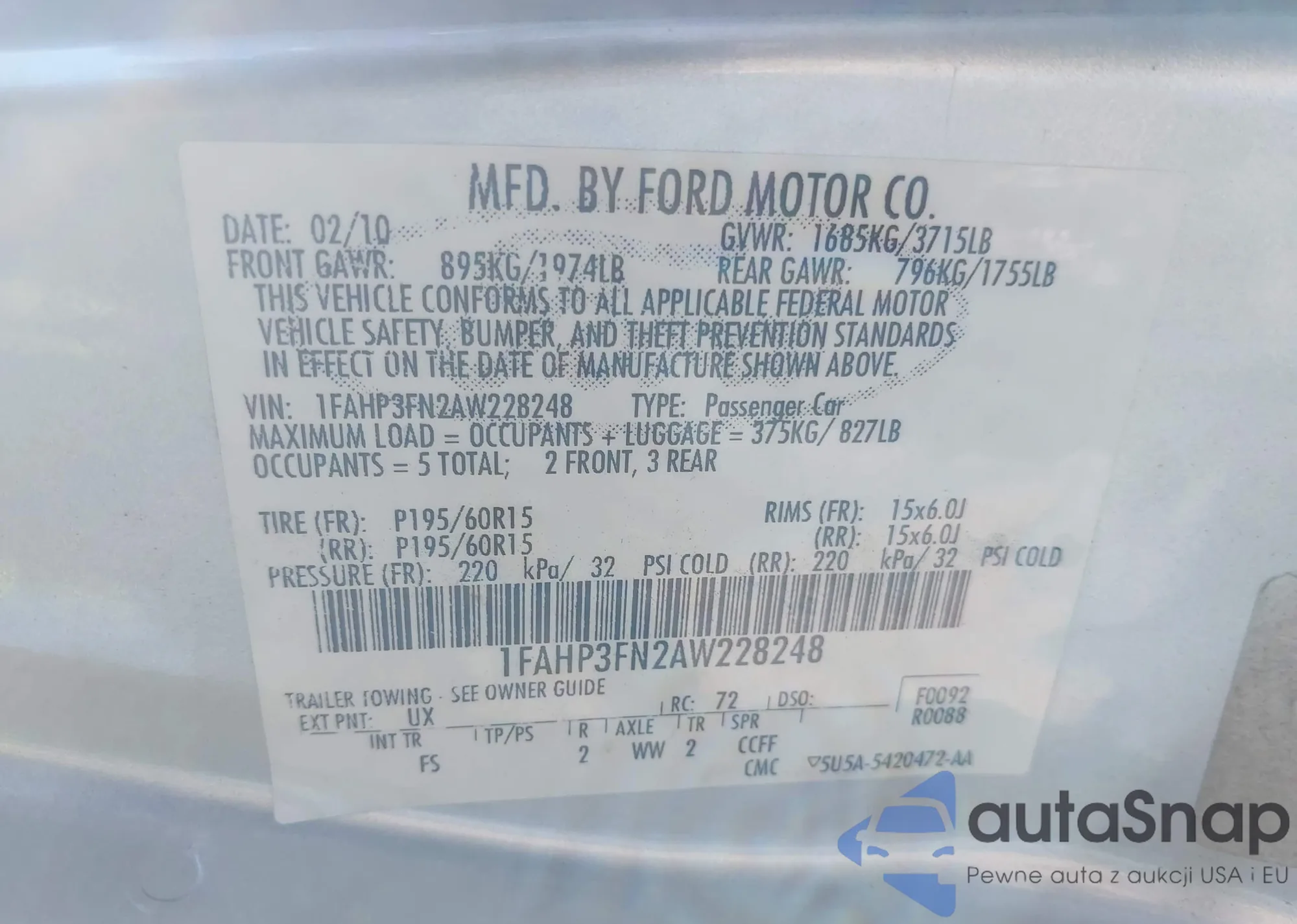 VIN: 1FAHP3FN2AW228248