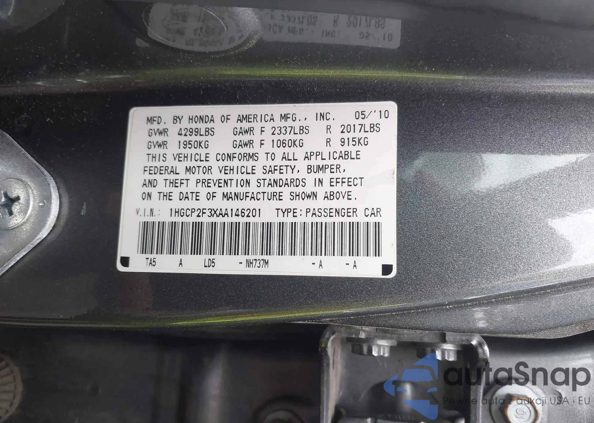 VIN: 1HGCP2F3XAA146201