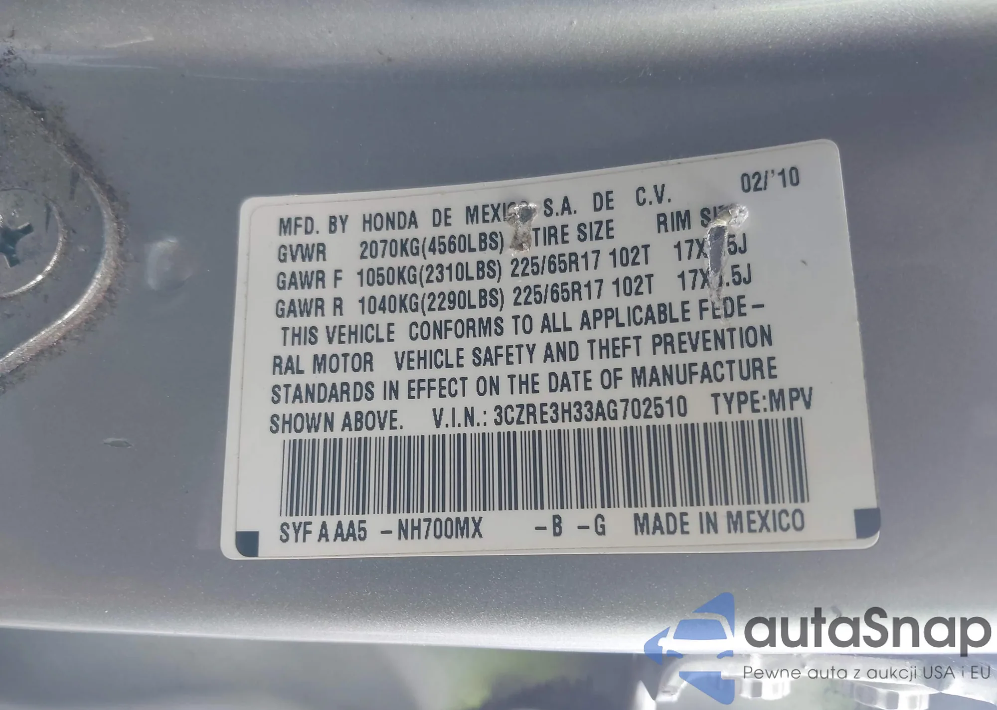 Honda CR-V 2010 – Historia pojazdu (sprzedany na IAAI)