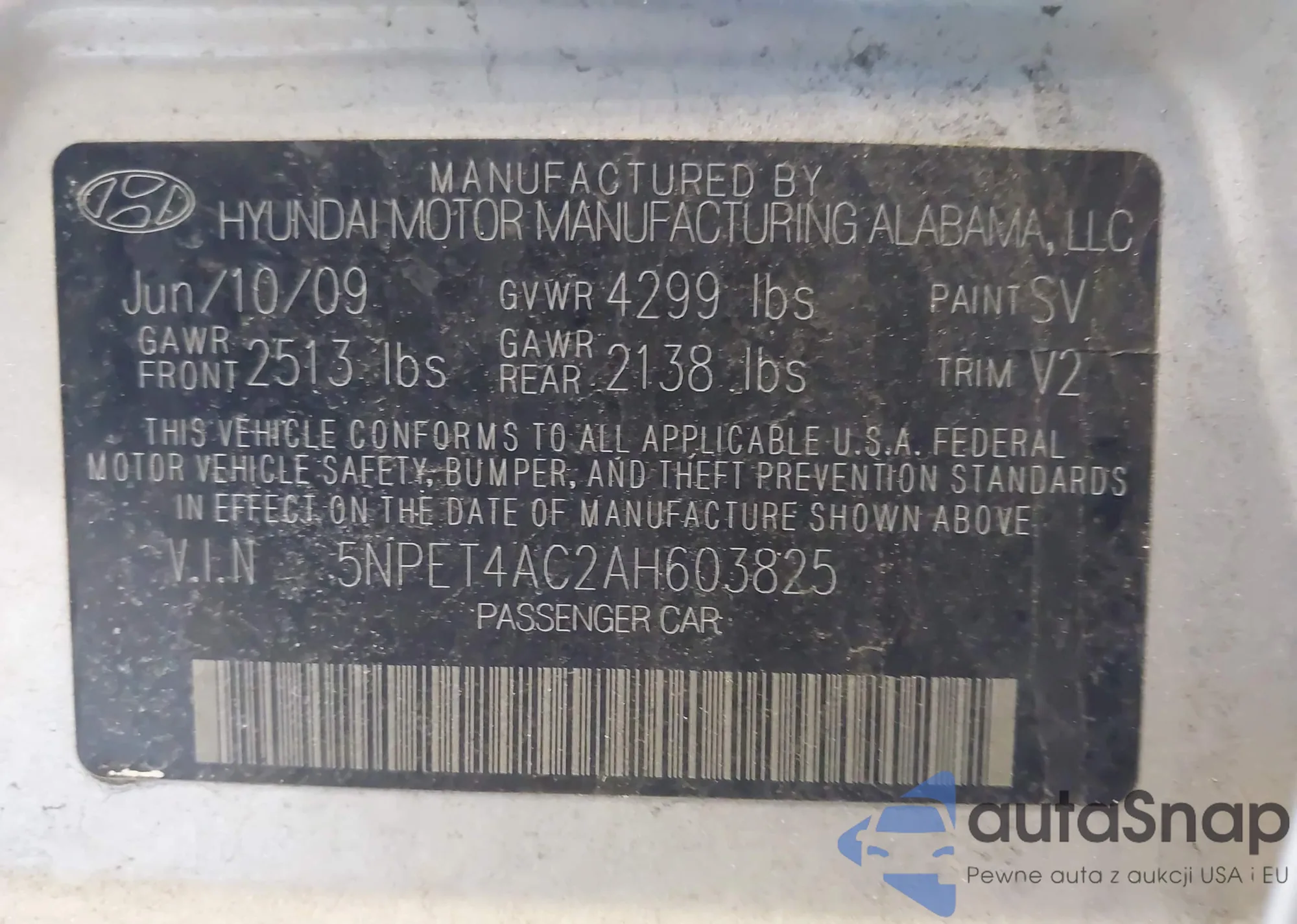 Samochód Hyundai Sonata 2010 (VIN 5NPET4AC2AH603825) nie był wcześniej licytowany. Dokumenty są czyste, przebieg odpowiada lub jest niższy niż średnia rynku. Sprzedaje go firma ubezpieczeniowa – polecamy zakup. Dostawa do portu zajmie ok. 6–8 tygodni.