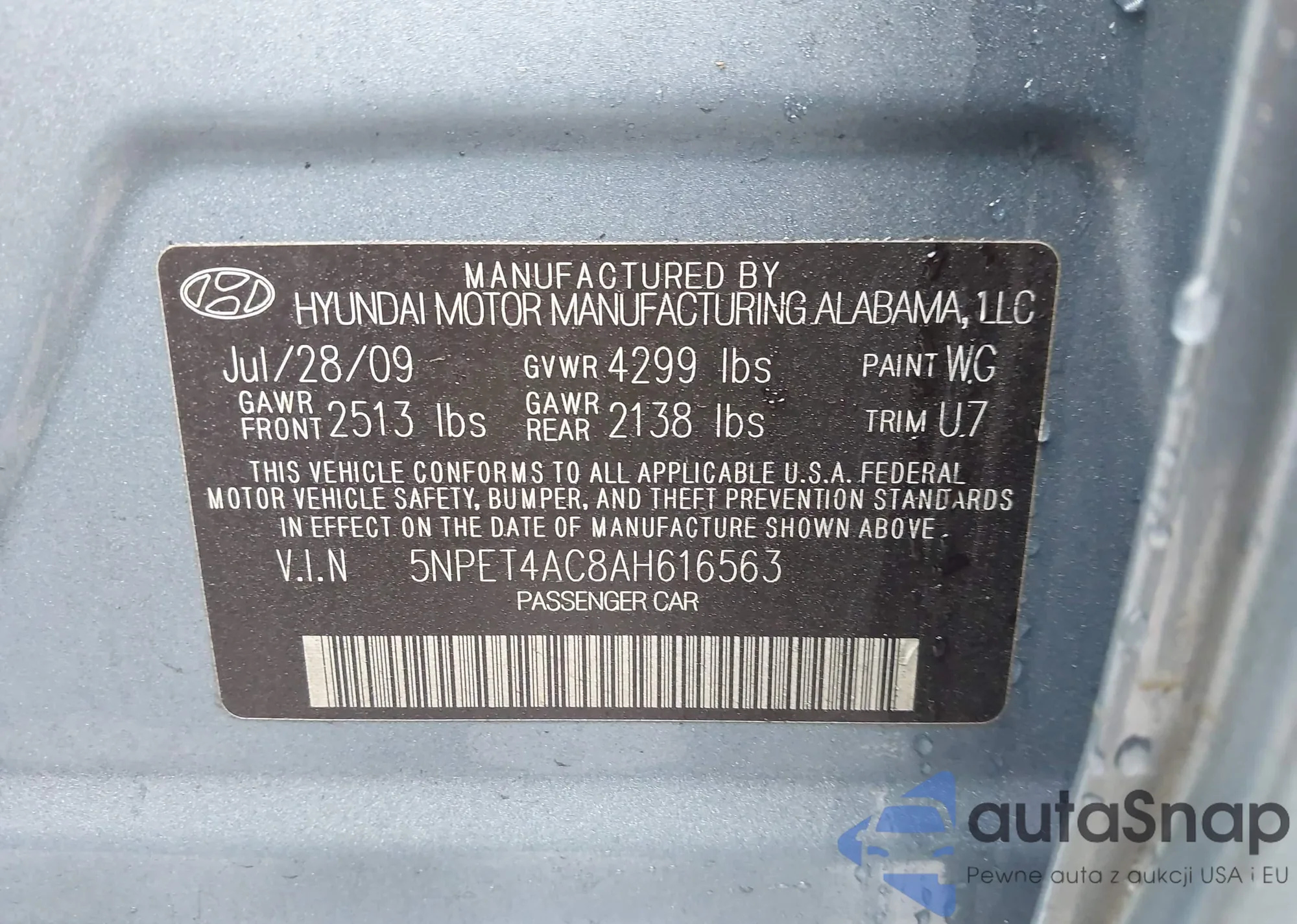 Samochód Hyundai Sonata 2010 (VIN 5NPET4AC8AH616563) sprzedaje go niezweryfikowany sprzedawca. Zalecamy raport Carfax i potwierdzenie możliwości rejestracji pojazdu przed zakupem.