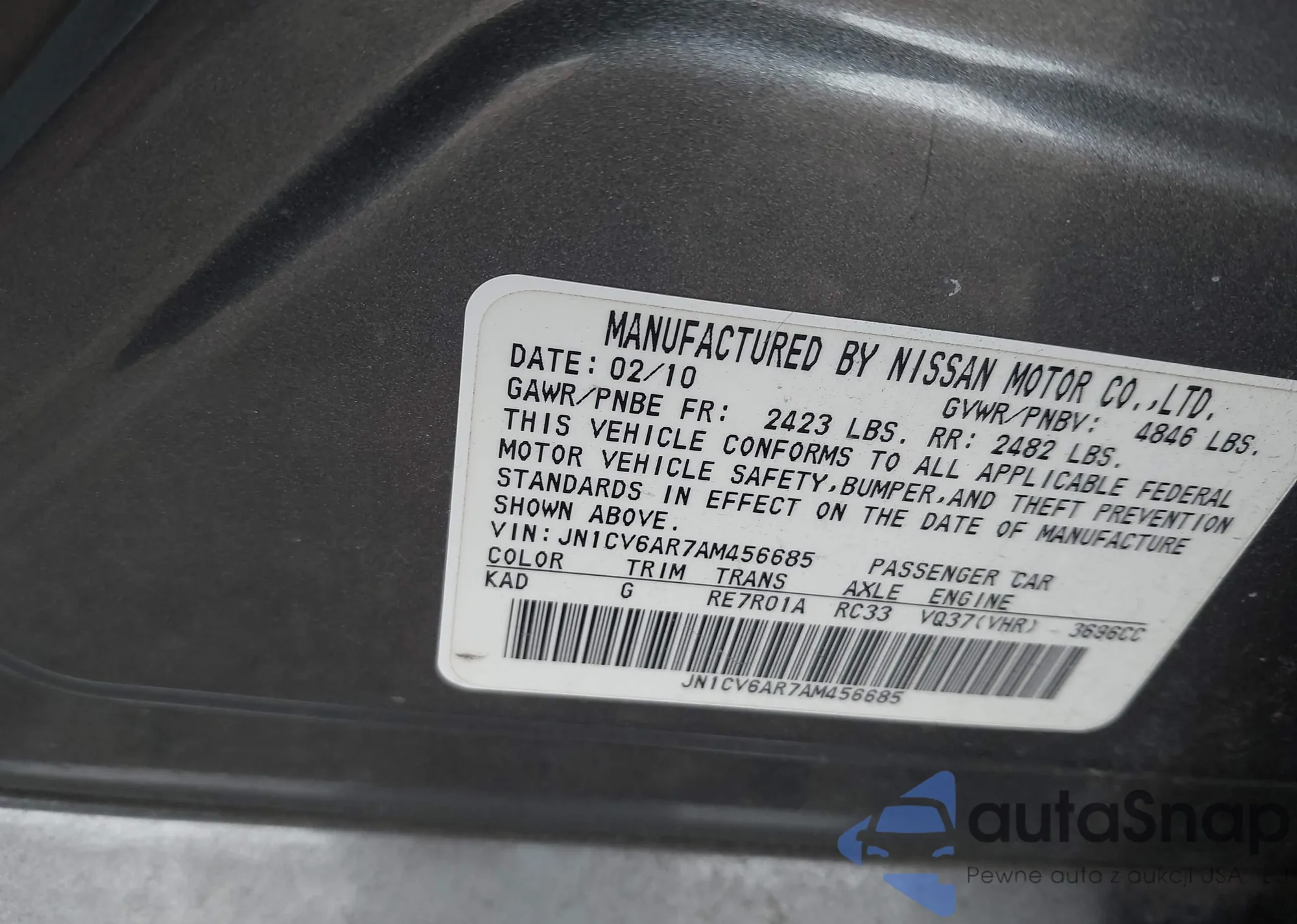 • VIN: JN1CV6AR7AM456685