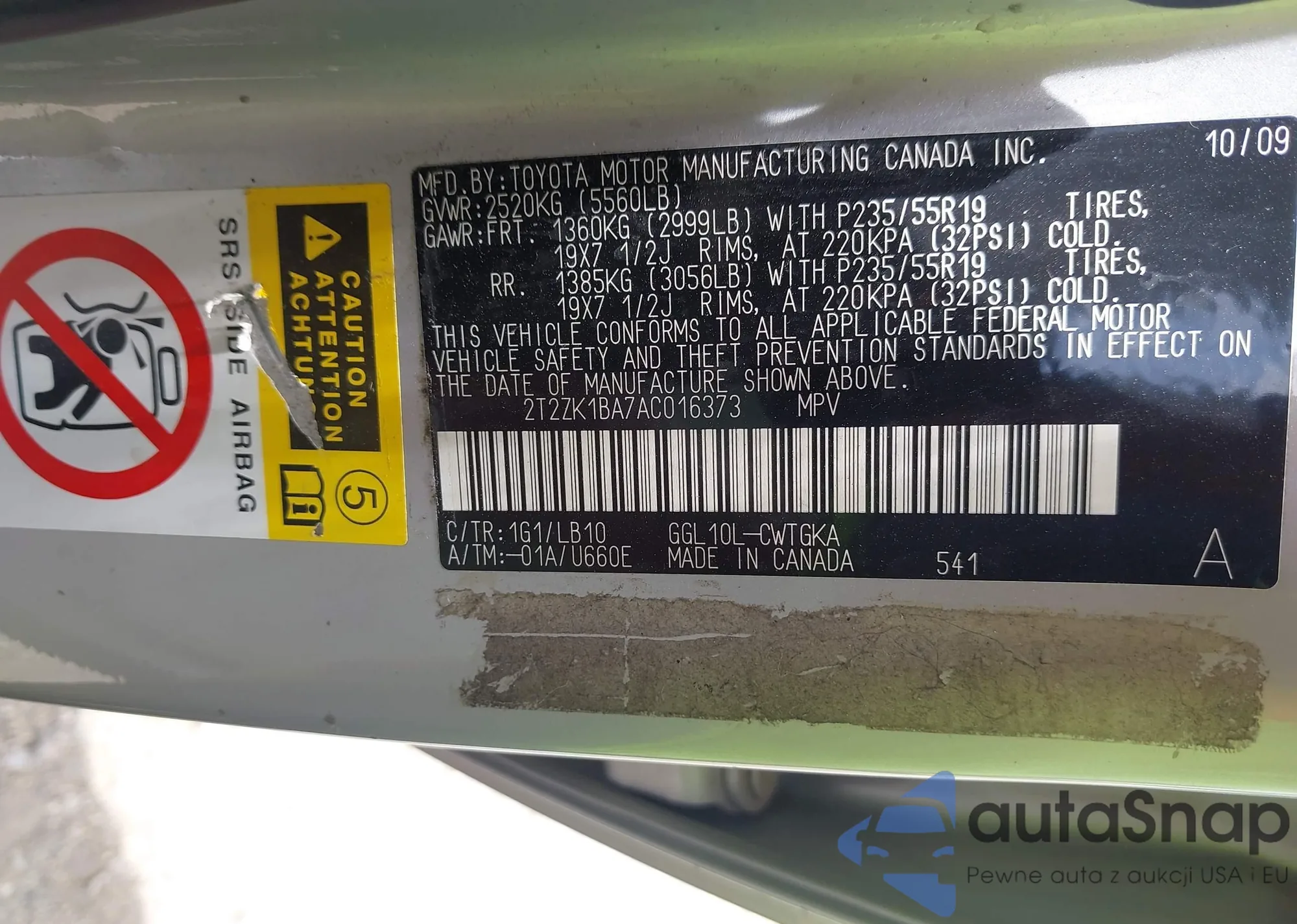 • VIN: 2T2ZK1BA7AC016373