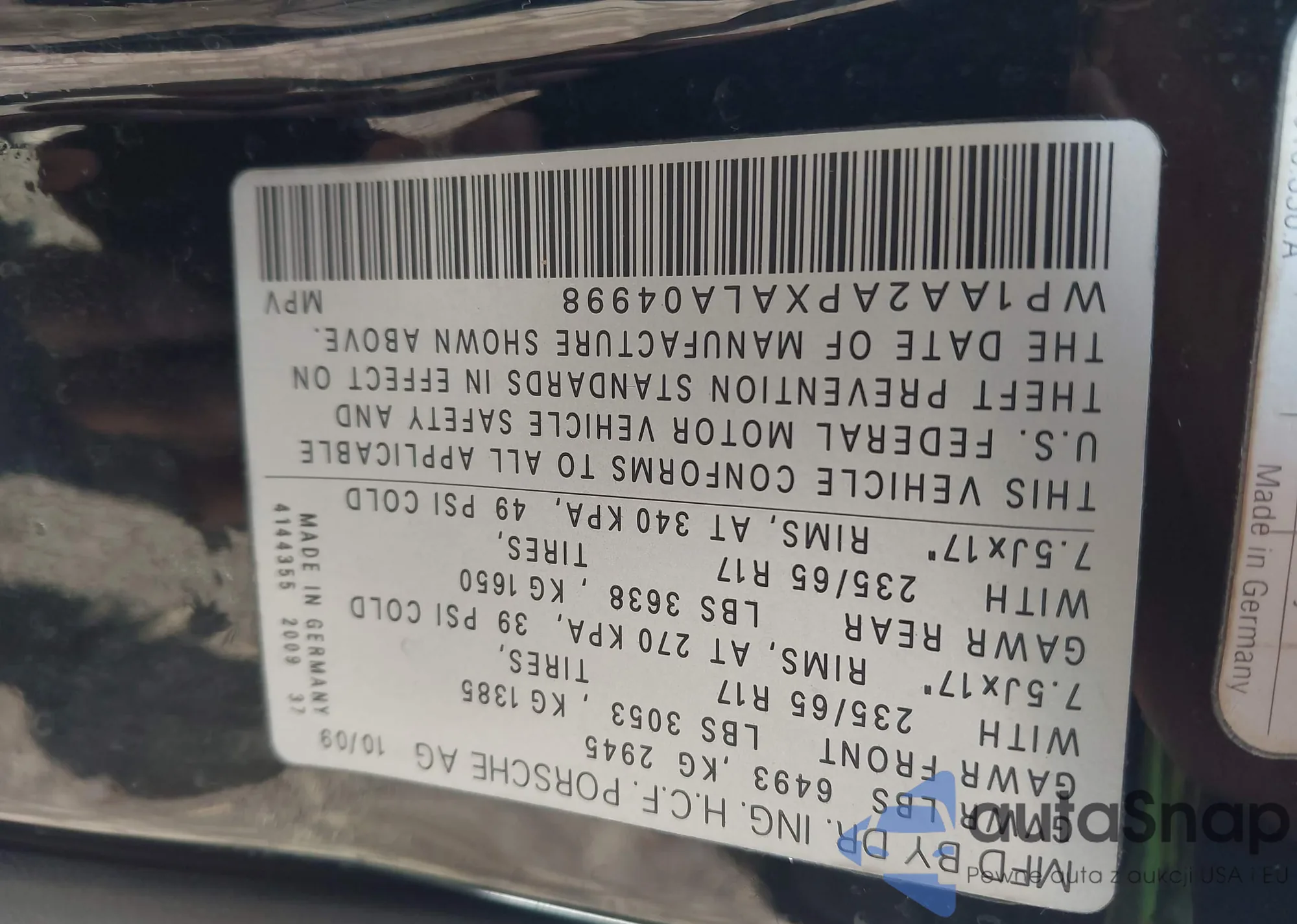 • VIN: WP1AA2APXALA04998