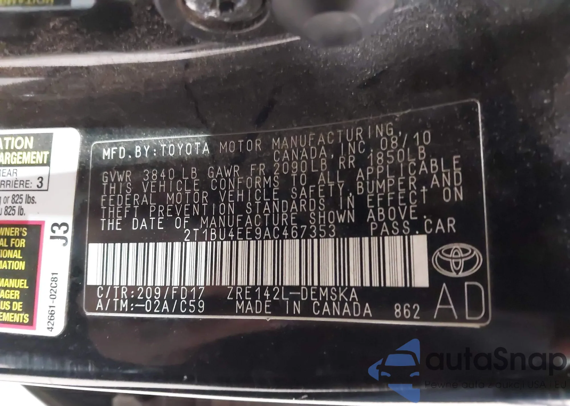 VIN: 2T1BU4EE9AC467353