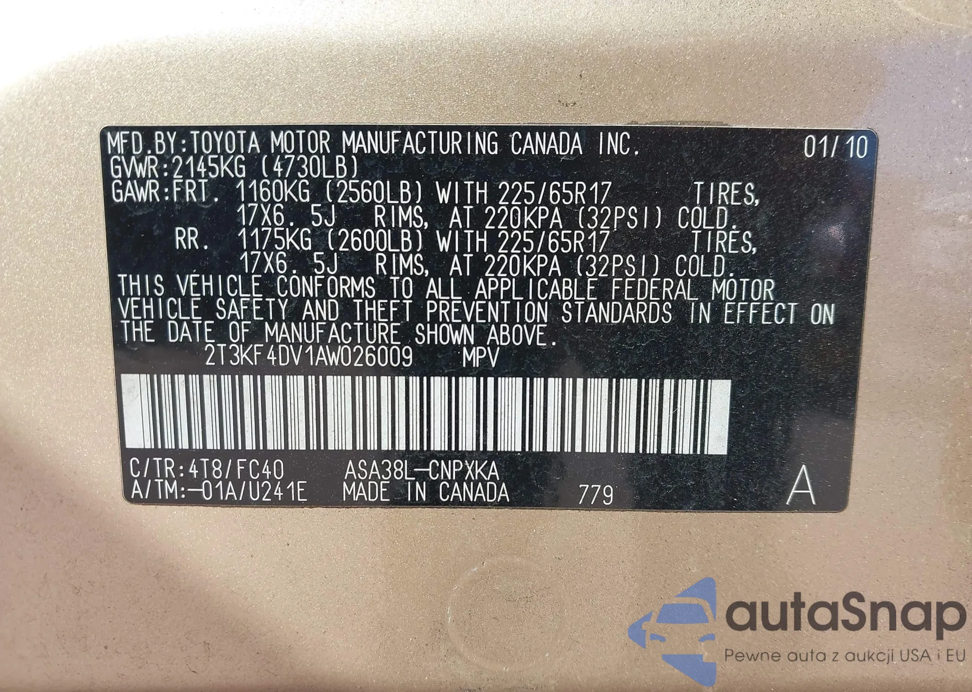 Samochód Toyota RAV 4 2010 (VIN 2T3KF4DV1AW026009) nie był wcześniej licytowany. Dokumenty są czyste, przebieg odpowiada lub jest niższy niż średnia rynku. Sprzedaje go firma ubezpieczeniowa – polecamy zakup. Dostawa do portu zajmie ok. 6–8 tygodni.