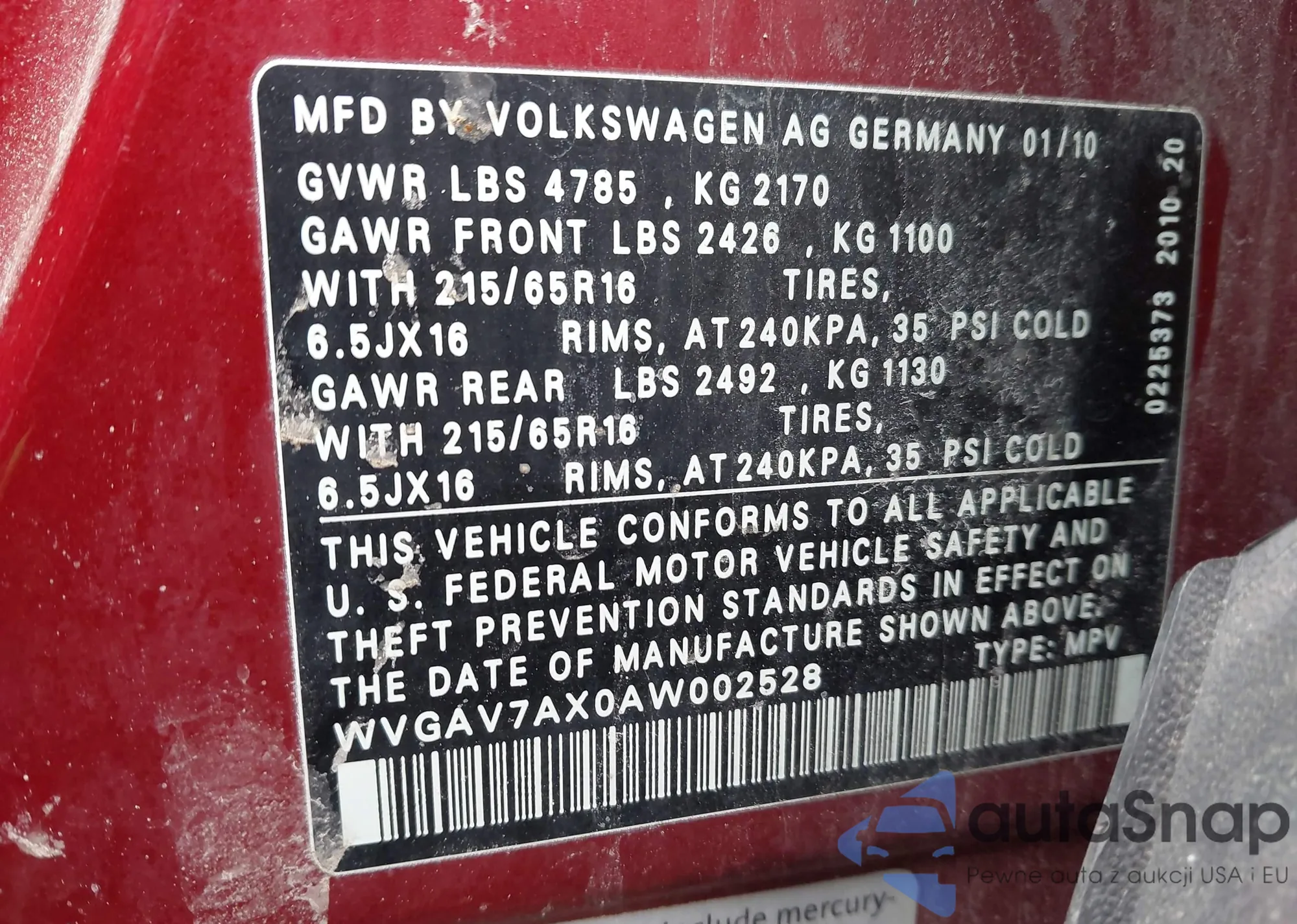 WVGAV7AX0AW002528 IAAI