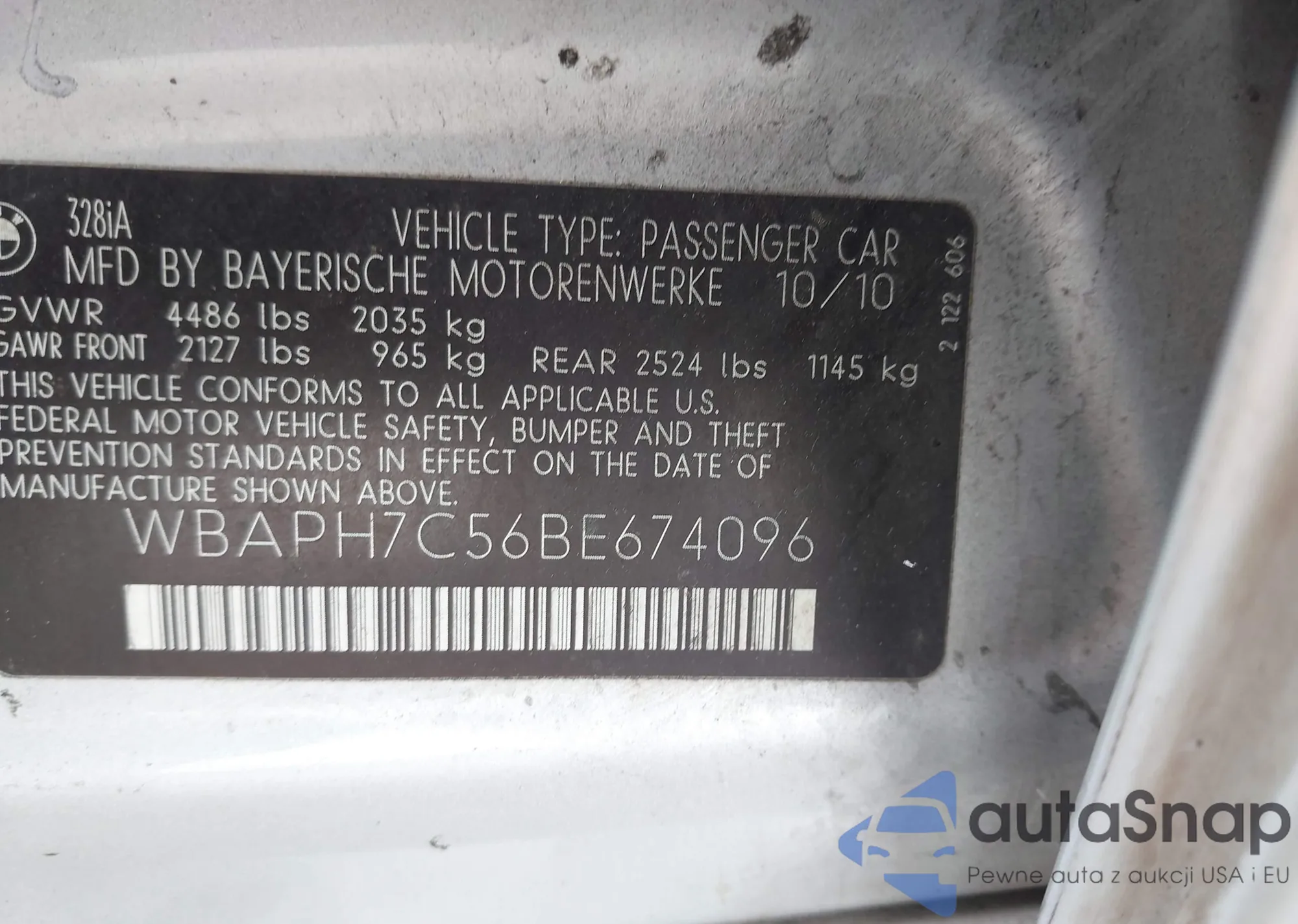 • VIN: WBAPH7C56BE674096