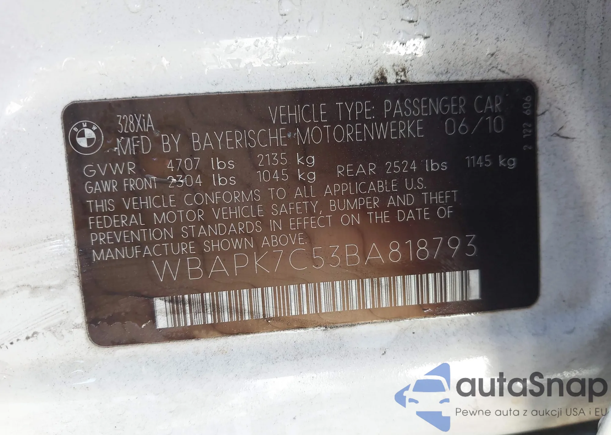 Samochód BMW 3er 2011 (VIN WBAPK7C53BA818793) był już licytowany 1 razy i/lub sprzedaje go niezweryfikowany sprzedawca. Zalecamy raport Carfax i potwierdzenie możliwości rejestracji pojazdu przed zakupem.