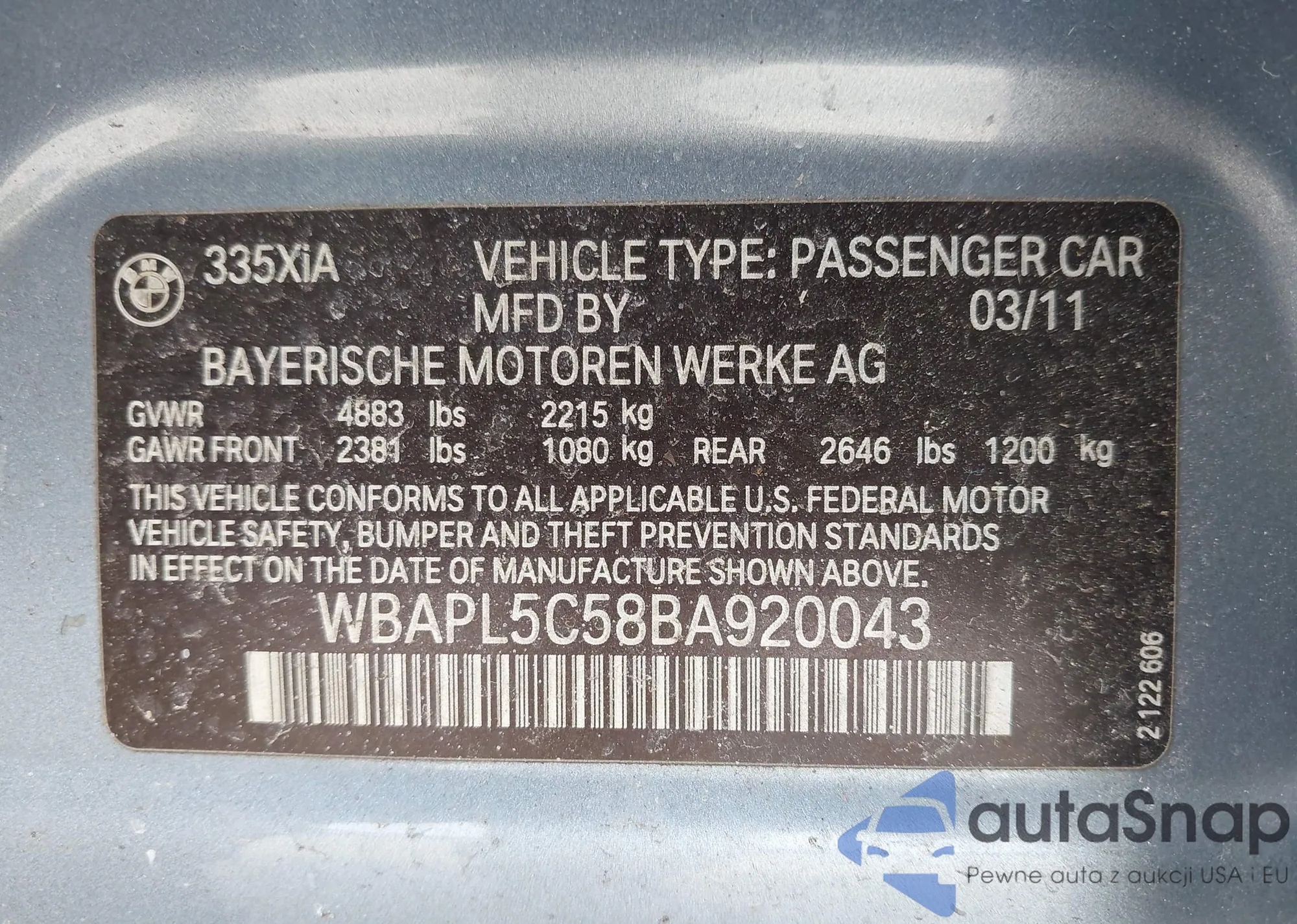 VIN: WBAPL5C58BA920043