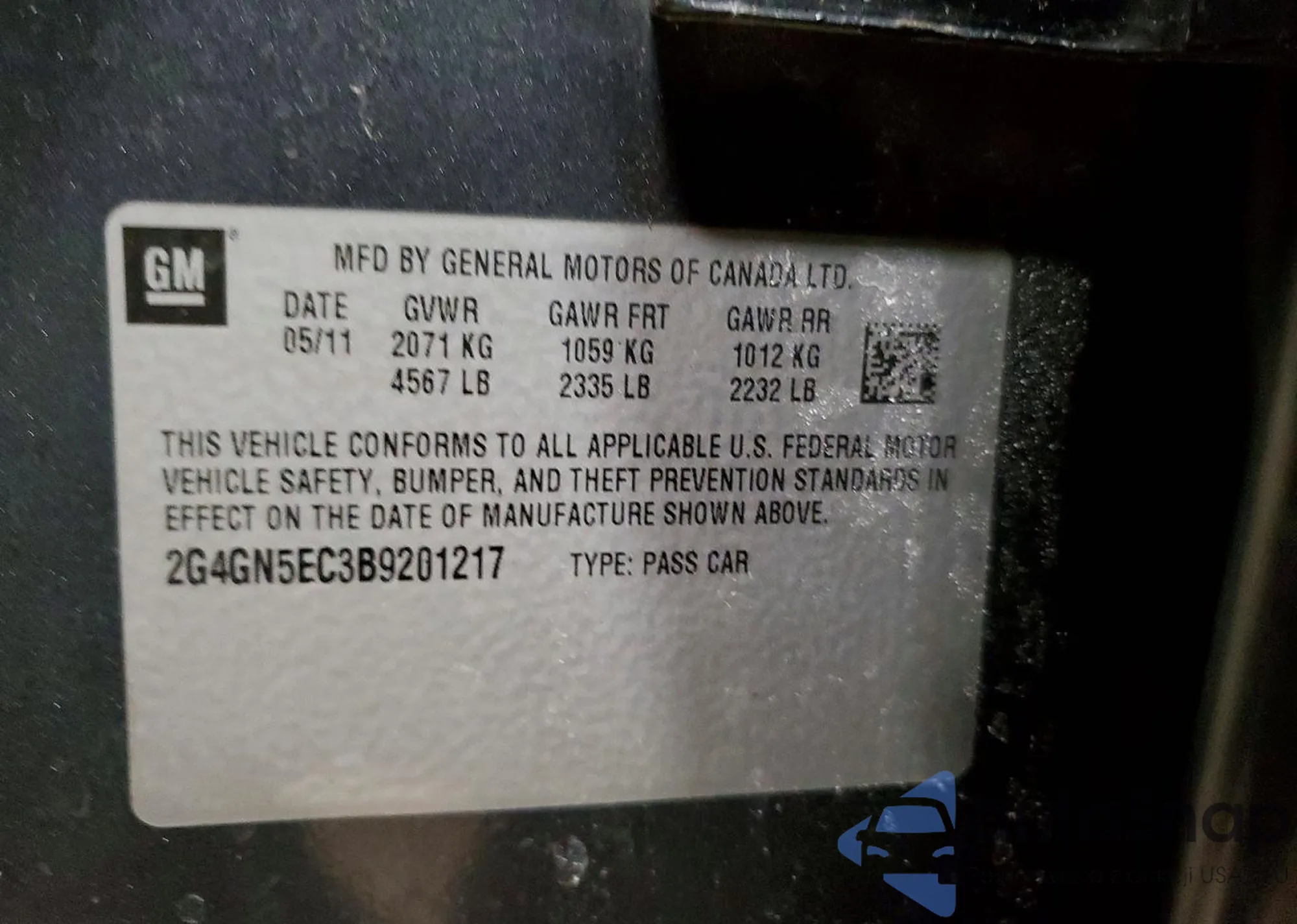 • VIN: 2G4GN5EC3B9201217