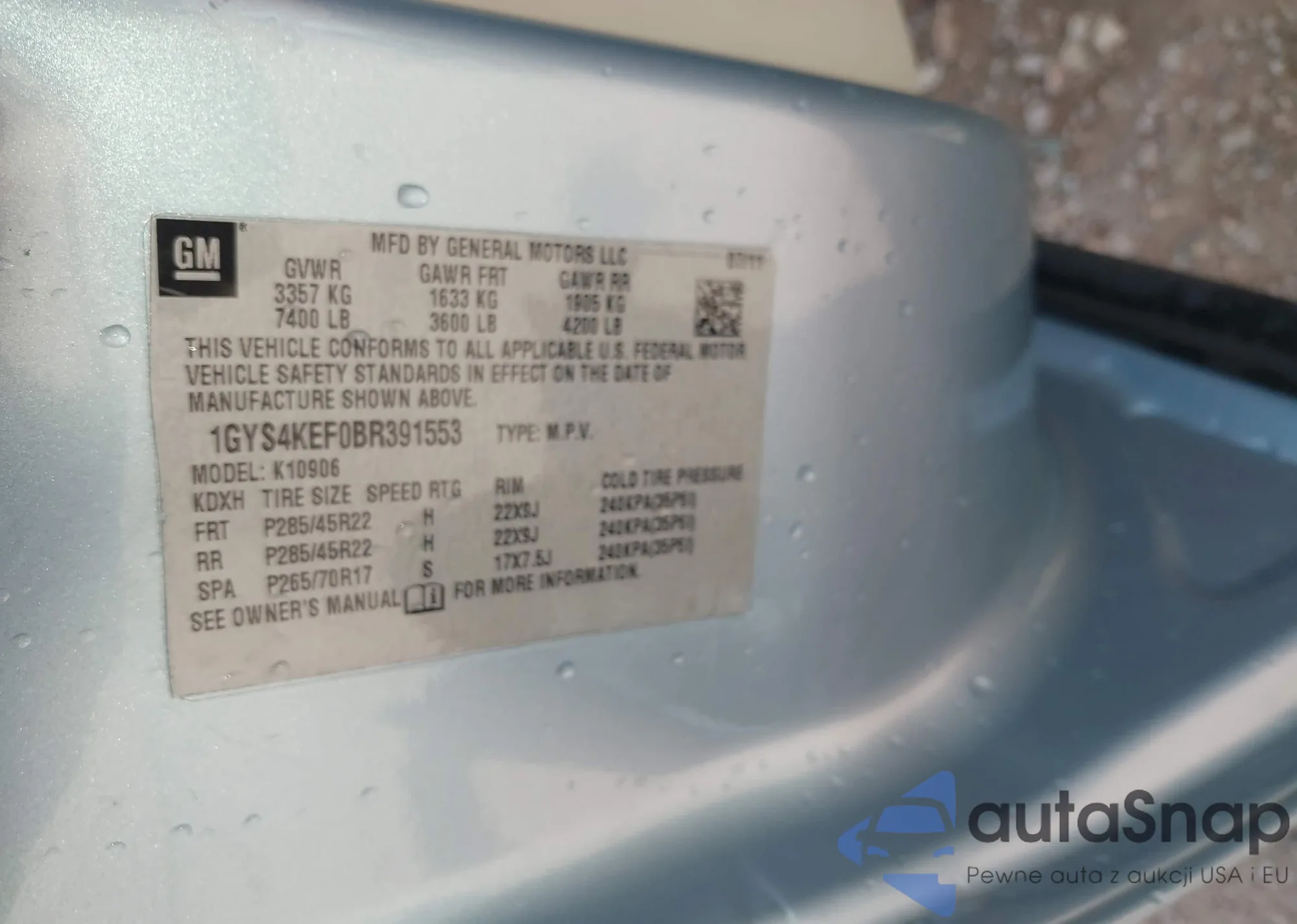 Samochód Cadillac Escalade 2011 (VIN 1GYS4KEF0BR391553) nie był wcześniej licytowany. Dokumenty są czyste, przebieg odpowiada lub jest niższy niż średnia rynku. Sprzedaje go firma ubezpieczeniowa – polecamy zakup. Dostawa do portu zajmie ok. 6–8 tygodni.