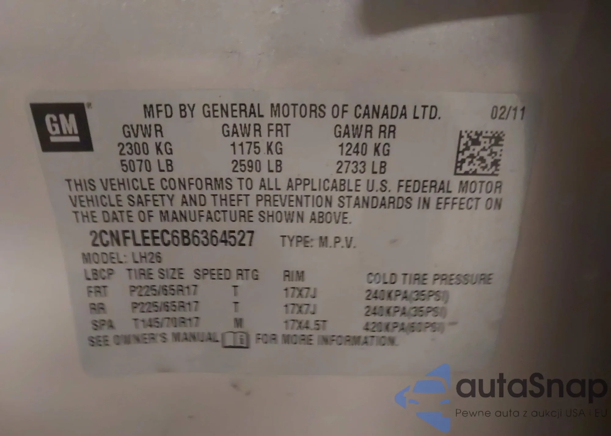 • VIN: 2CNFLEEC6B6364527