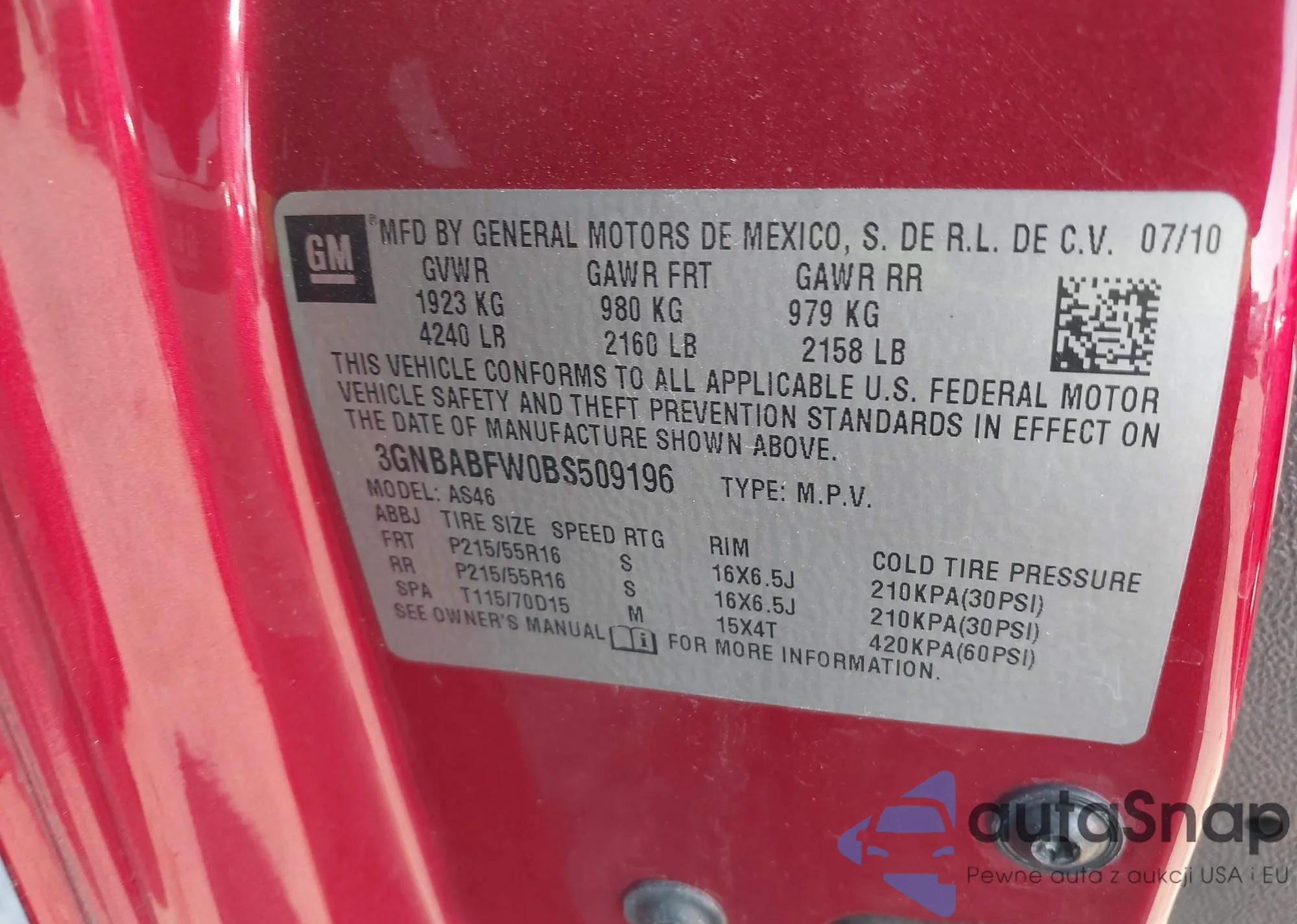 • VIN: 3GNBABFW0BS509196