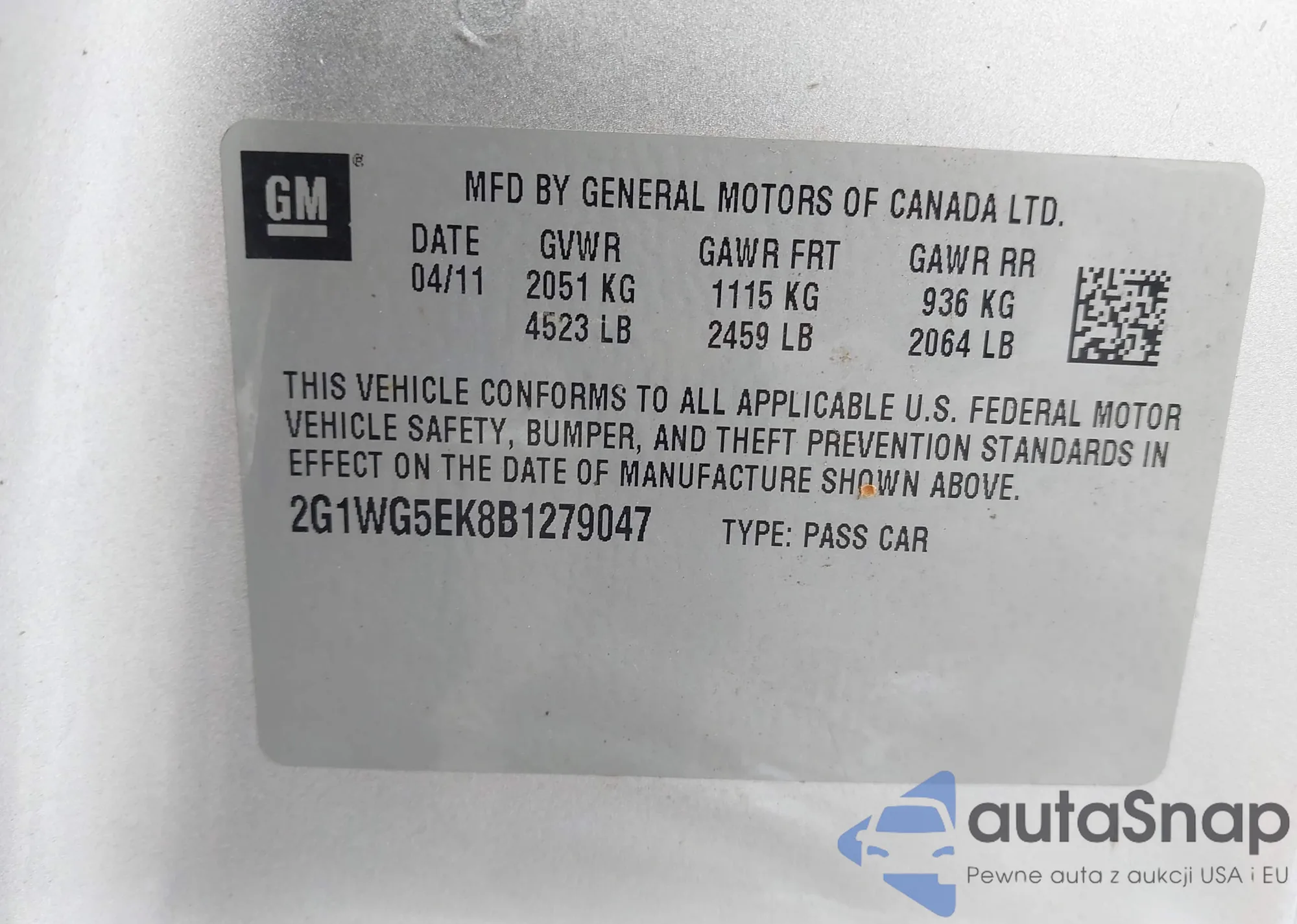 • VIN: 2G1WG5EK8B1264791