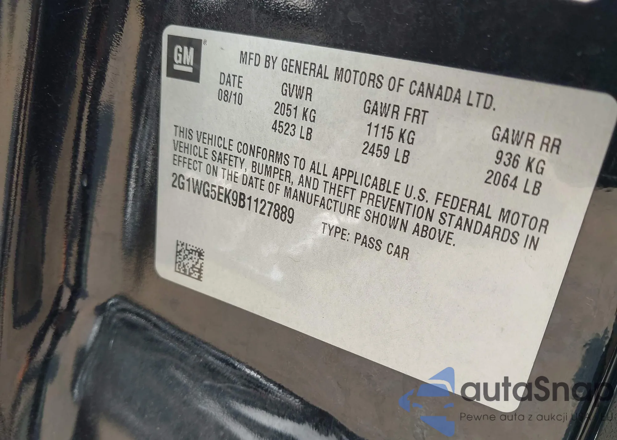 • VIN: 2G1WG5EK9B1127889