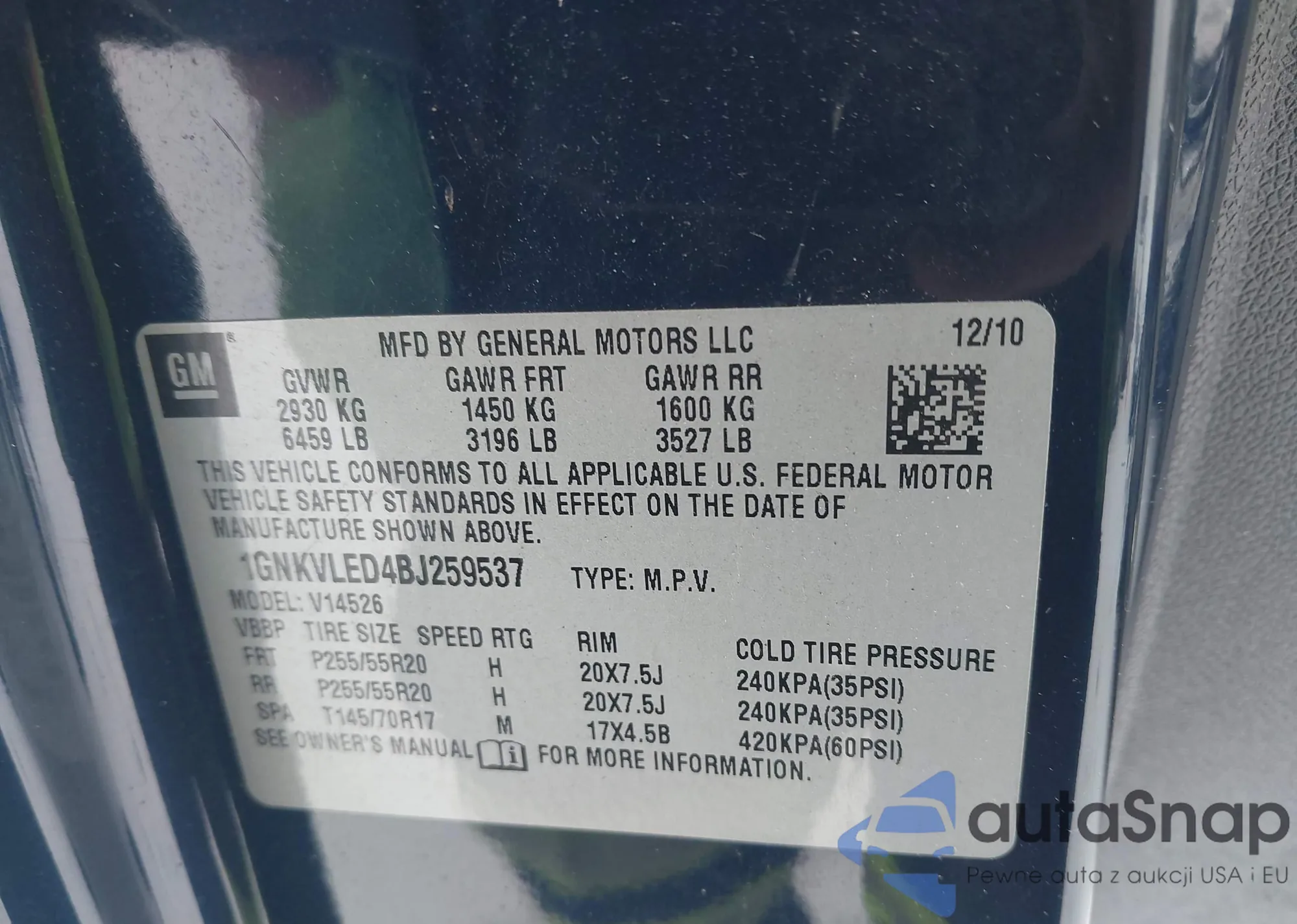 VIN: 1GNKVLED4BJ259537