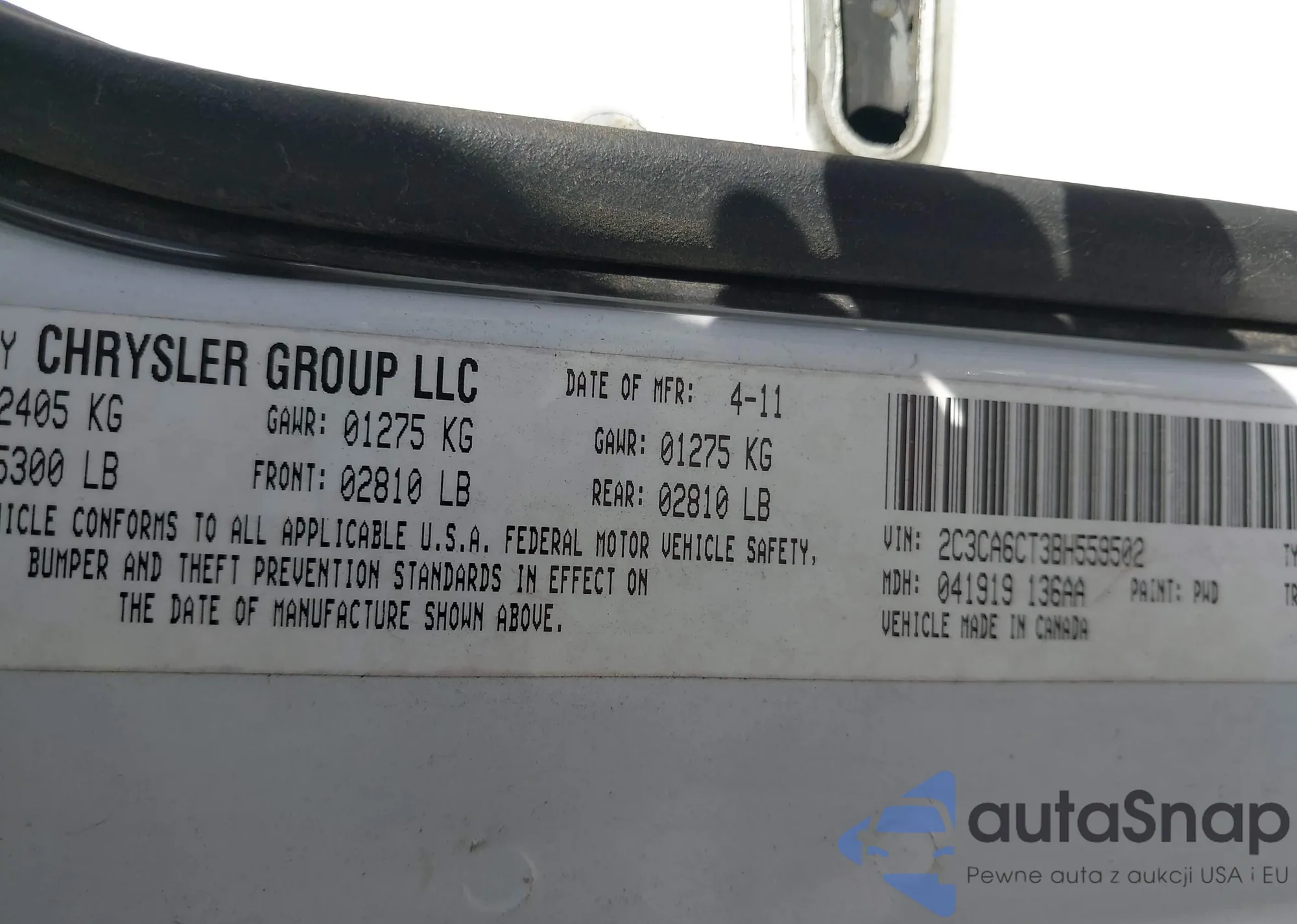 • VIN: 2C3CA6CT3BH559502
