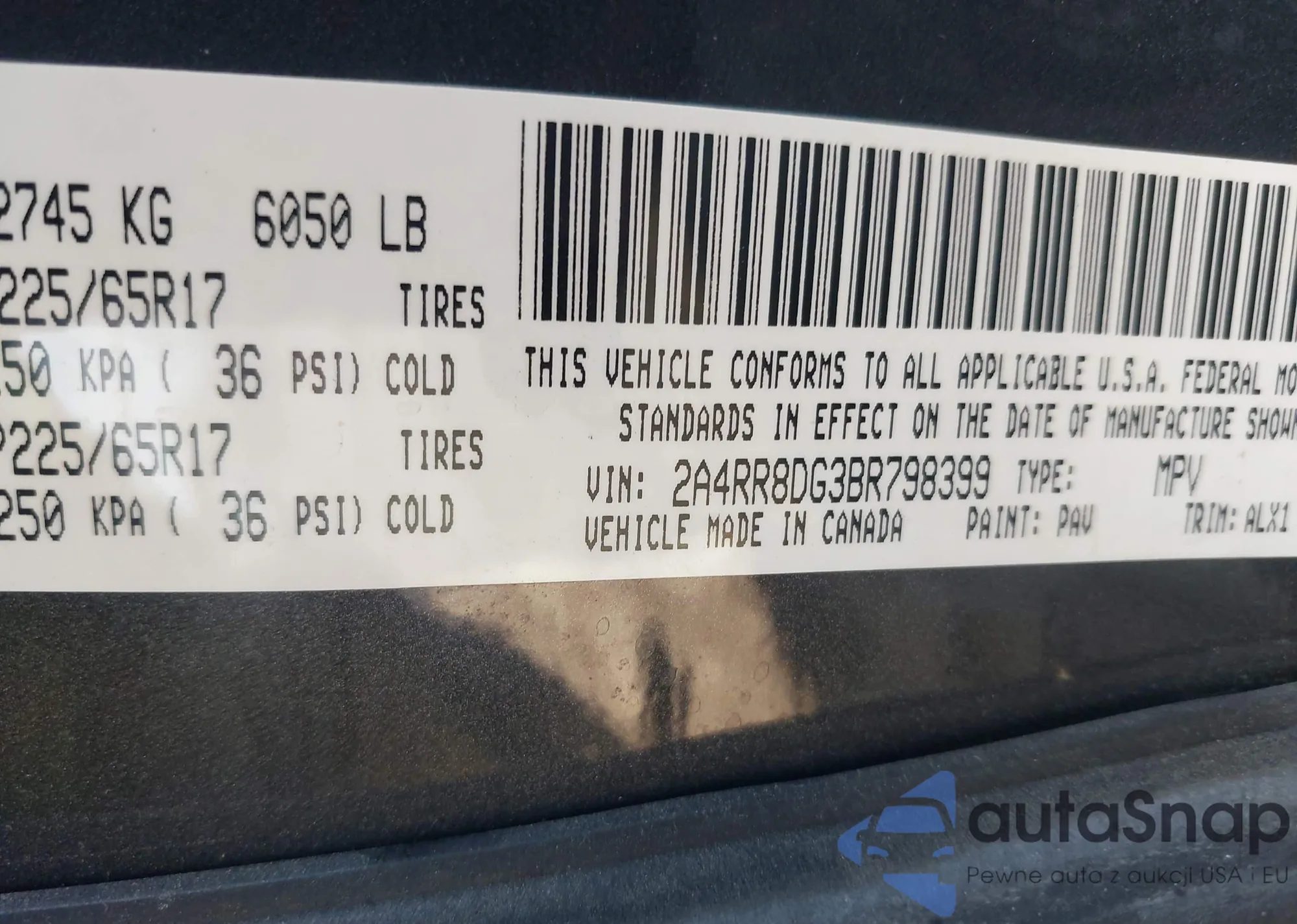 • VIN: 2A4RR8DG3BR798399