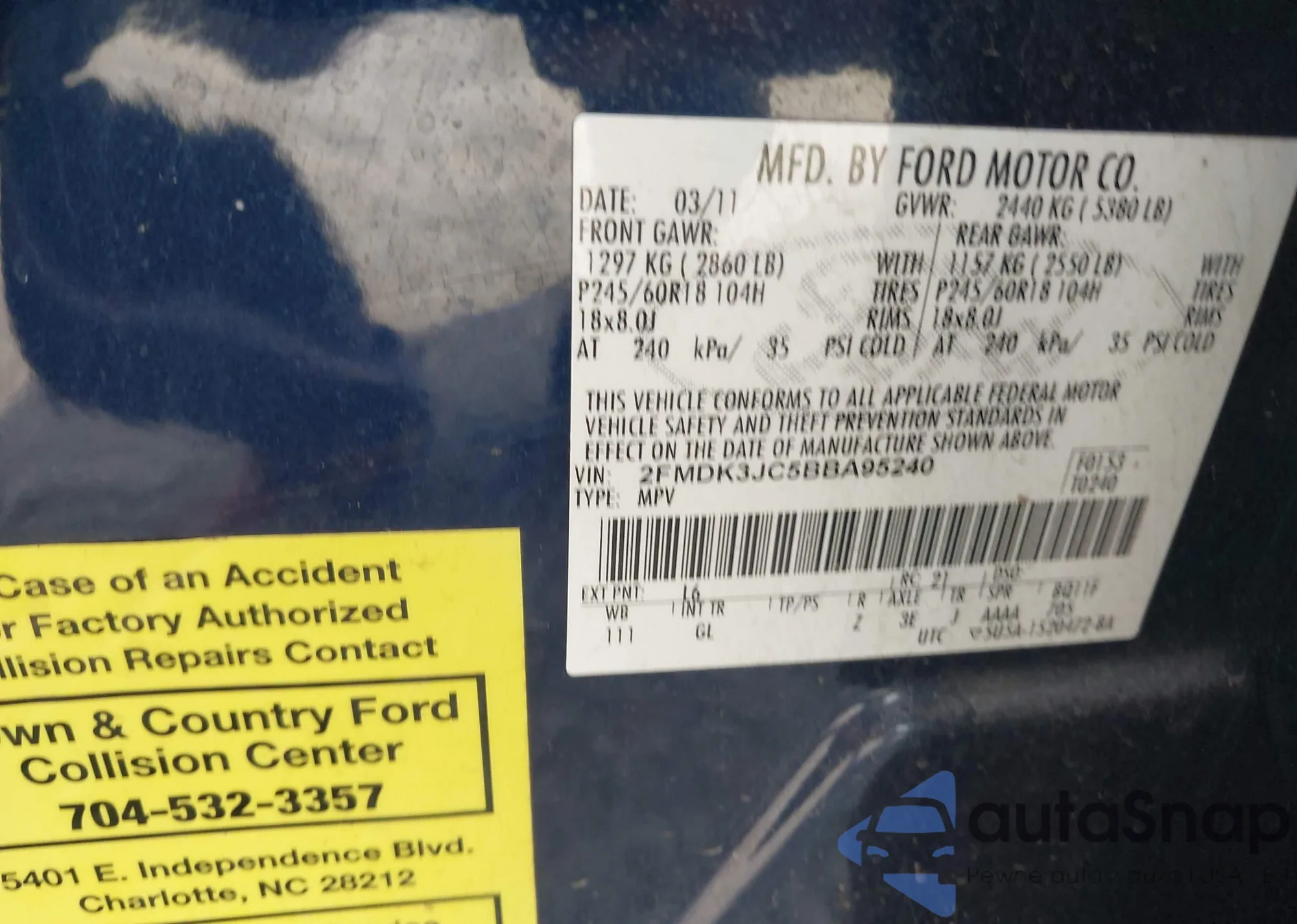 VIN: 2FMDK3JC5BBA95240