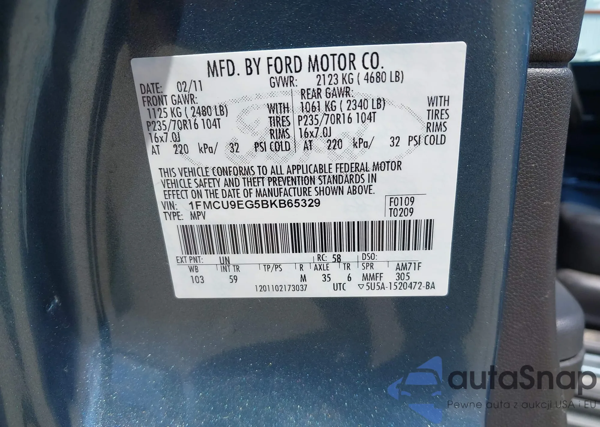 VIN: 1FMCU9EG5BKB65329