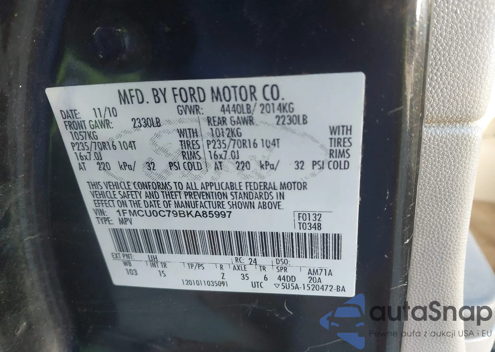 • VIN: 1FMCU0C79BKA85997